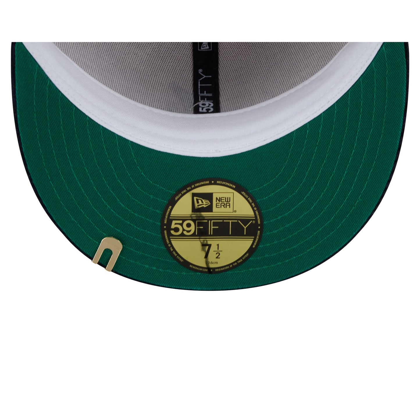 The Atlanta Braves Two Tone Cord 59FIFTY Fitted Cap features an embroidered Braves logo at the front panels against a corduroy fabrication throughout with an MLB Batterman logo at the rear. Additional details include a League patch at the right-wear side, a 2021 World Series visor clip, and a green undervisor.