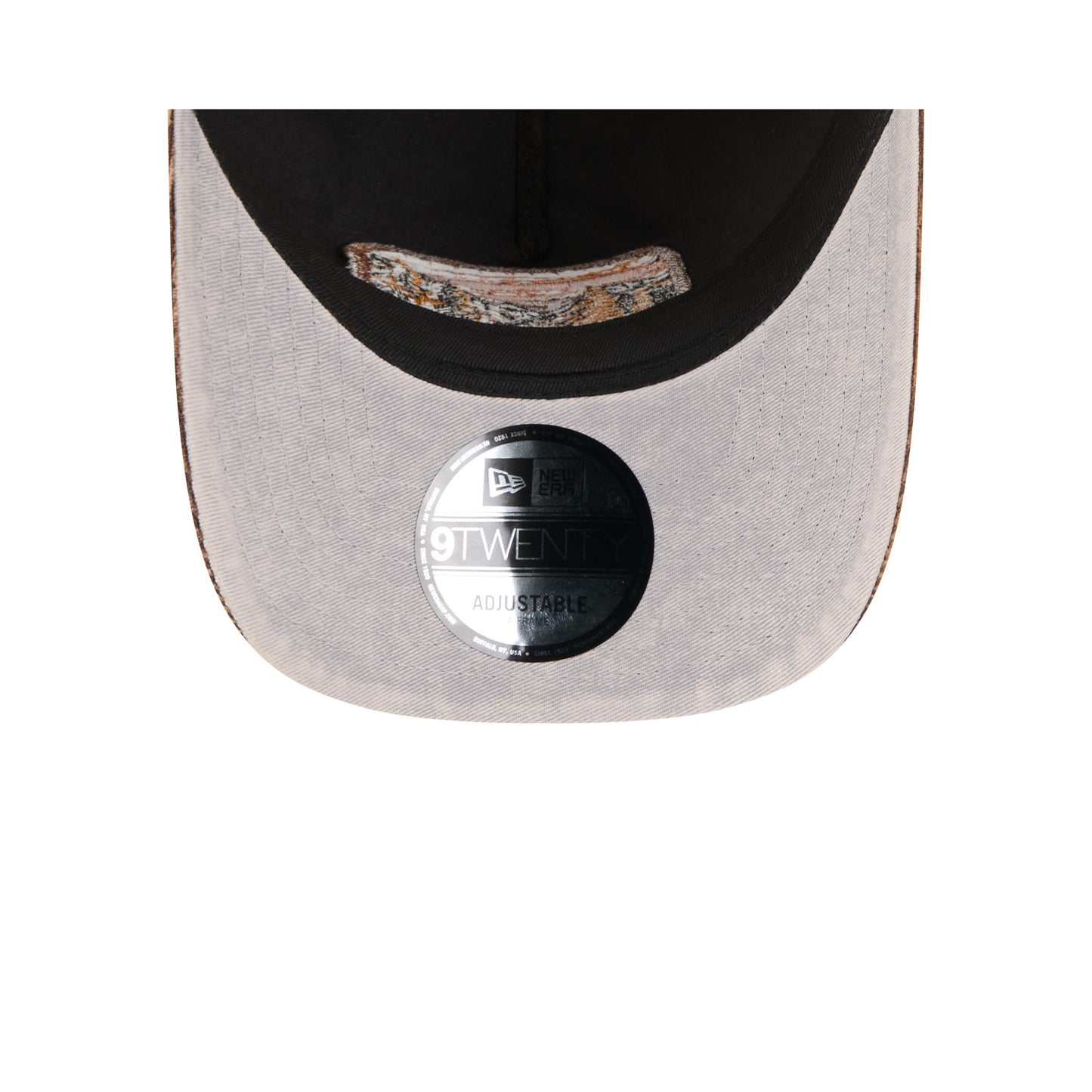 The Atlanta Braves Vintage Landscape 9TWENTY A-Frame Trucker features an embroidered Braves Vintage Landscape patch at the front panels with a team logo at the right-wear side. Additional details include an adjustable snapback closure at the rear and a gray undervisor.