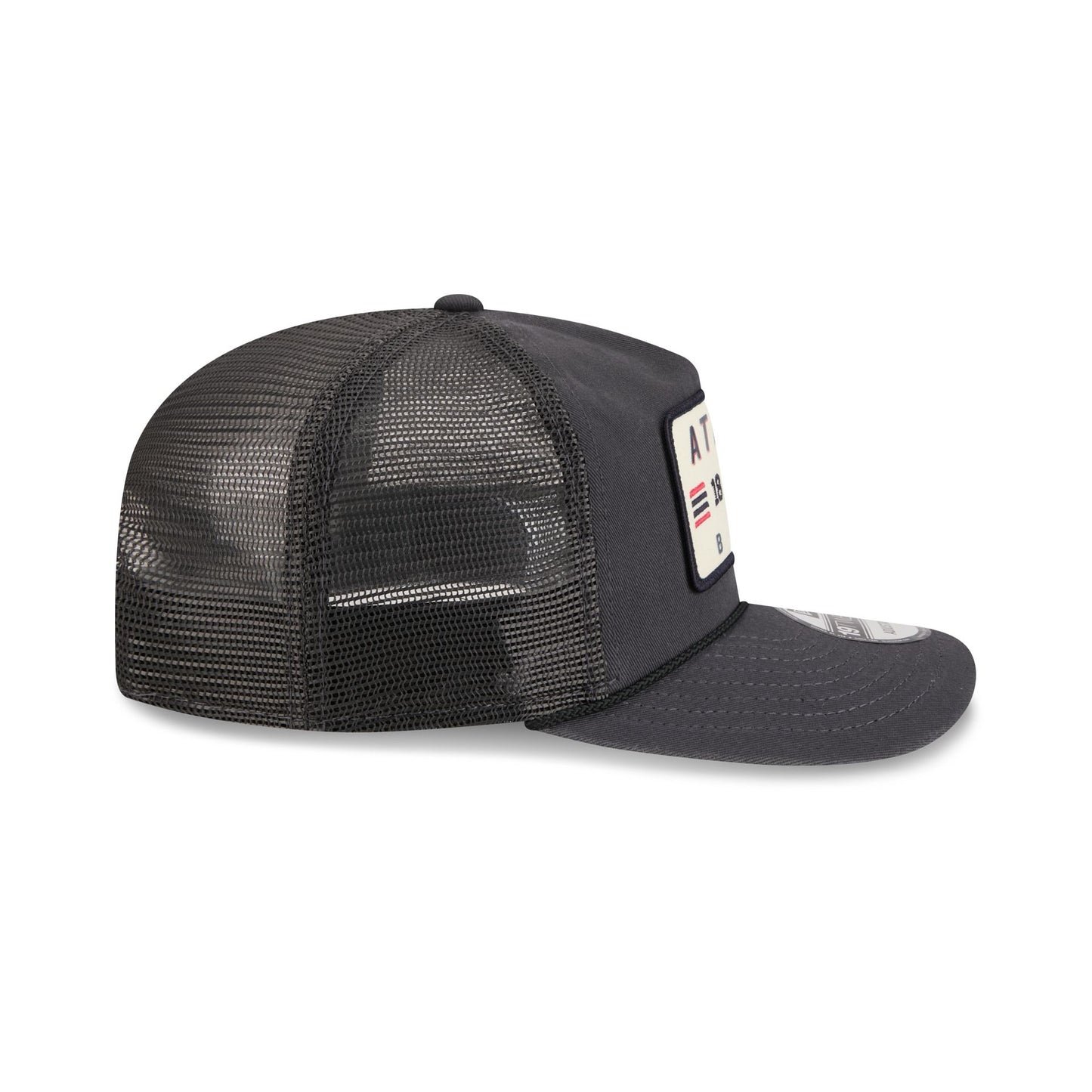 The Atlanta Braves Washed Graphite 19TWENTY Trucker features an embroidered Braves patch at the front panels against a soft washed fabrication. Additional details include an adjustable snapback closure at a mesh rear and a gray undervisor.