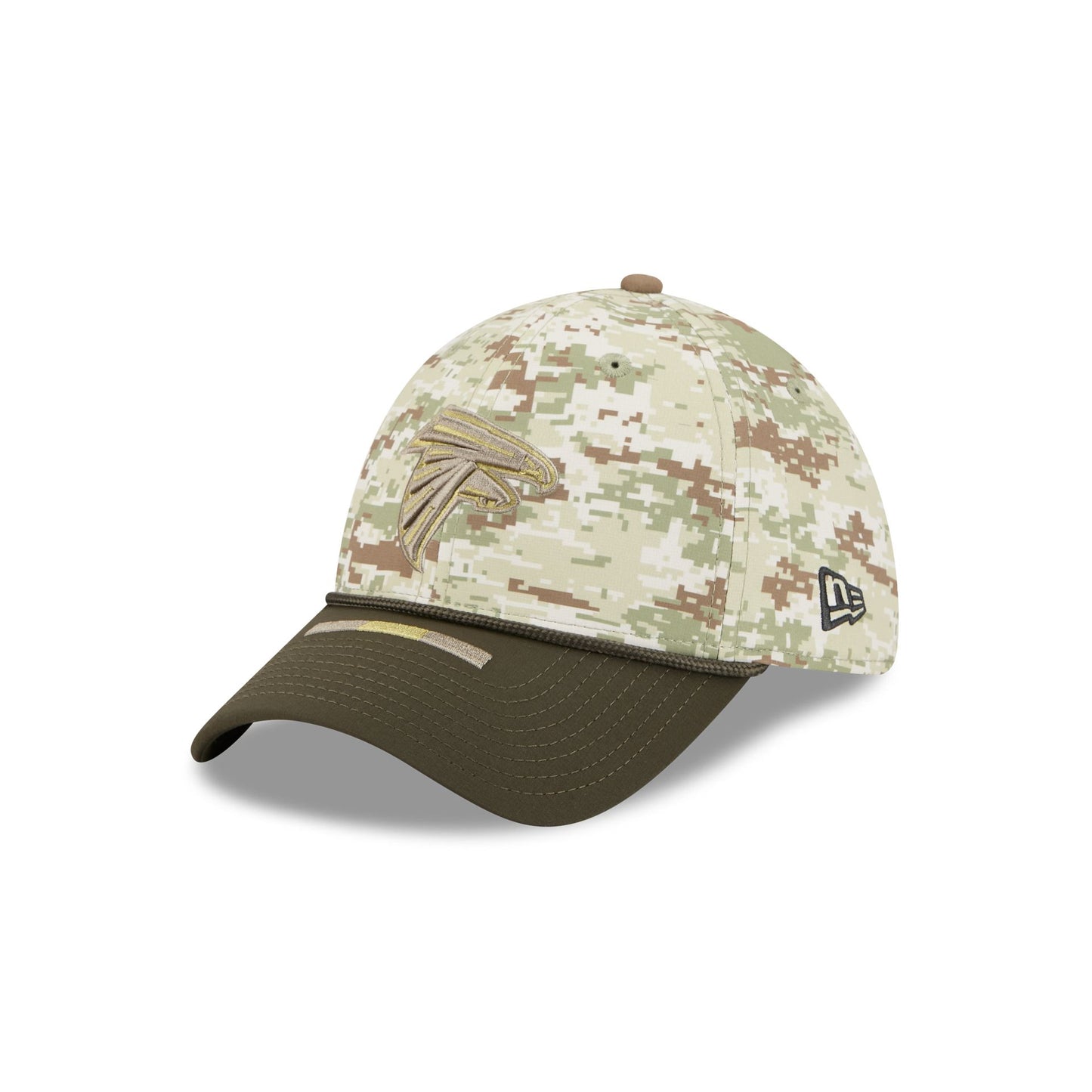 The Atlanta Falcons 2025 Salute to Service Digi Camo 39THIRTY Stretch Fit Cap features an embroidered Falcons logo at the front panels with the official NFL Salute to Service patch at the rear and American flag patch at the right-wear side. Additional details include three green stripes at the visor and a silicone team logo patch at a dark green undervisor..