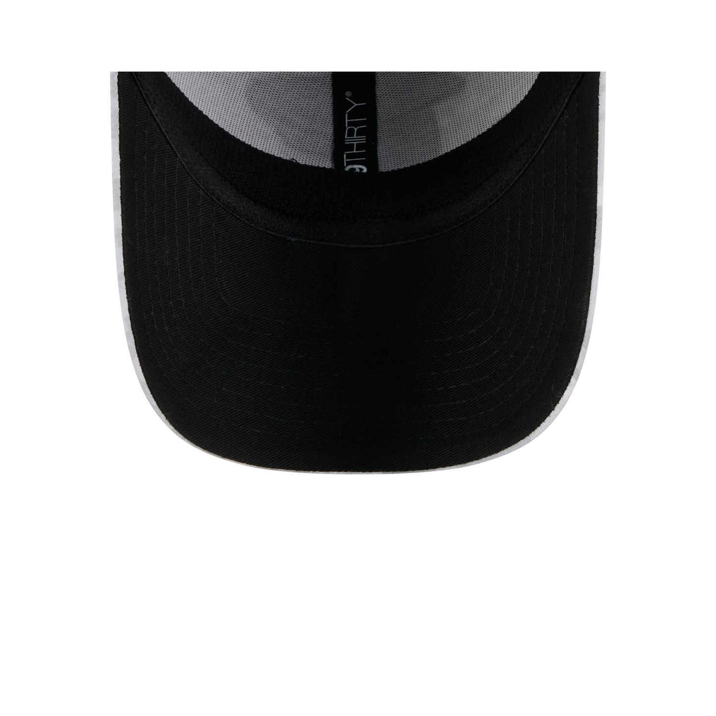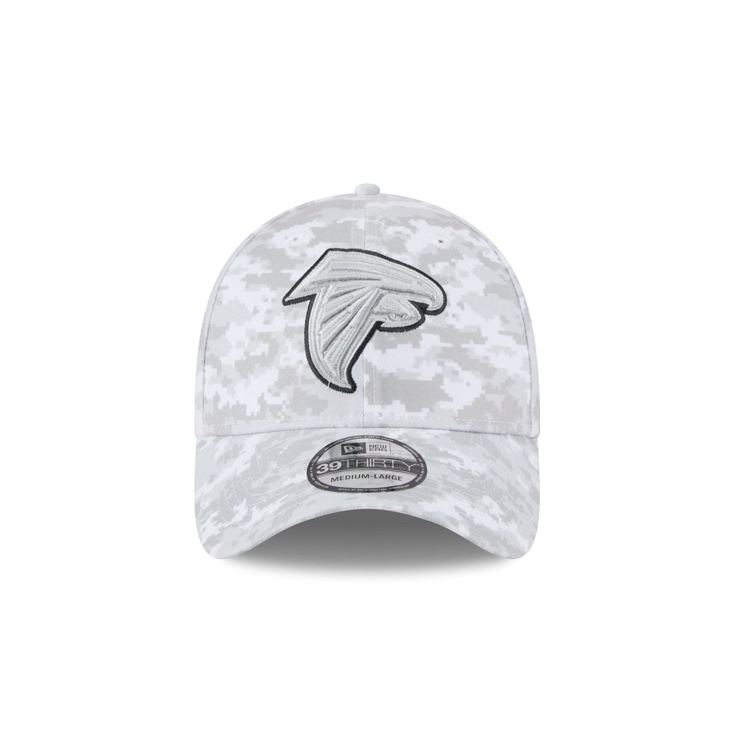 The Atlanta Falcons 2025 Salute to Service Fan Gear 39THIRTY Stretch Fit Cap features an embroidered Falcons logo at the front panels with the official NFL Salute to Service patch at the rear, an American flag patch at the right-wear side, and a team color undervisor.