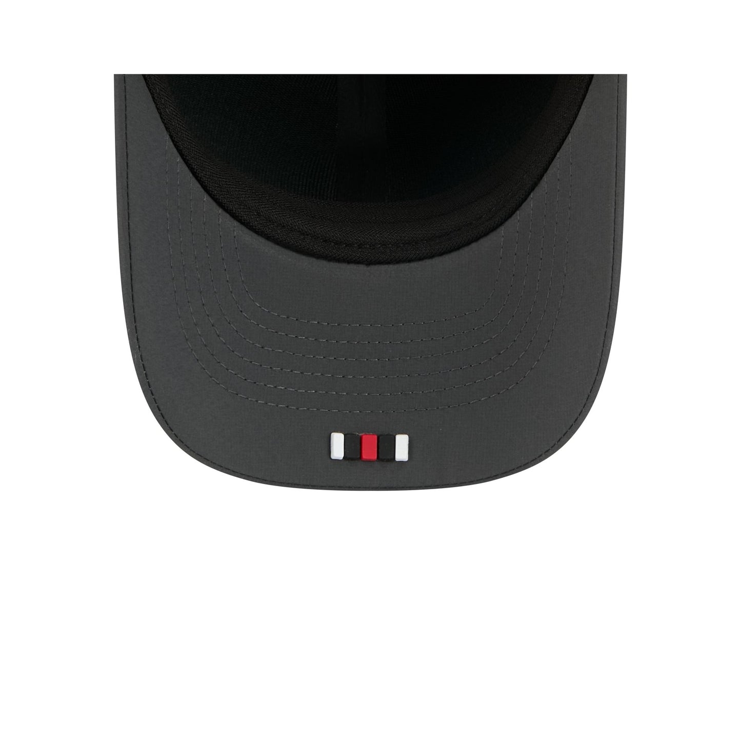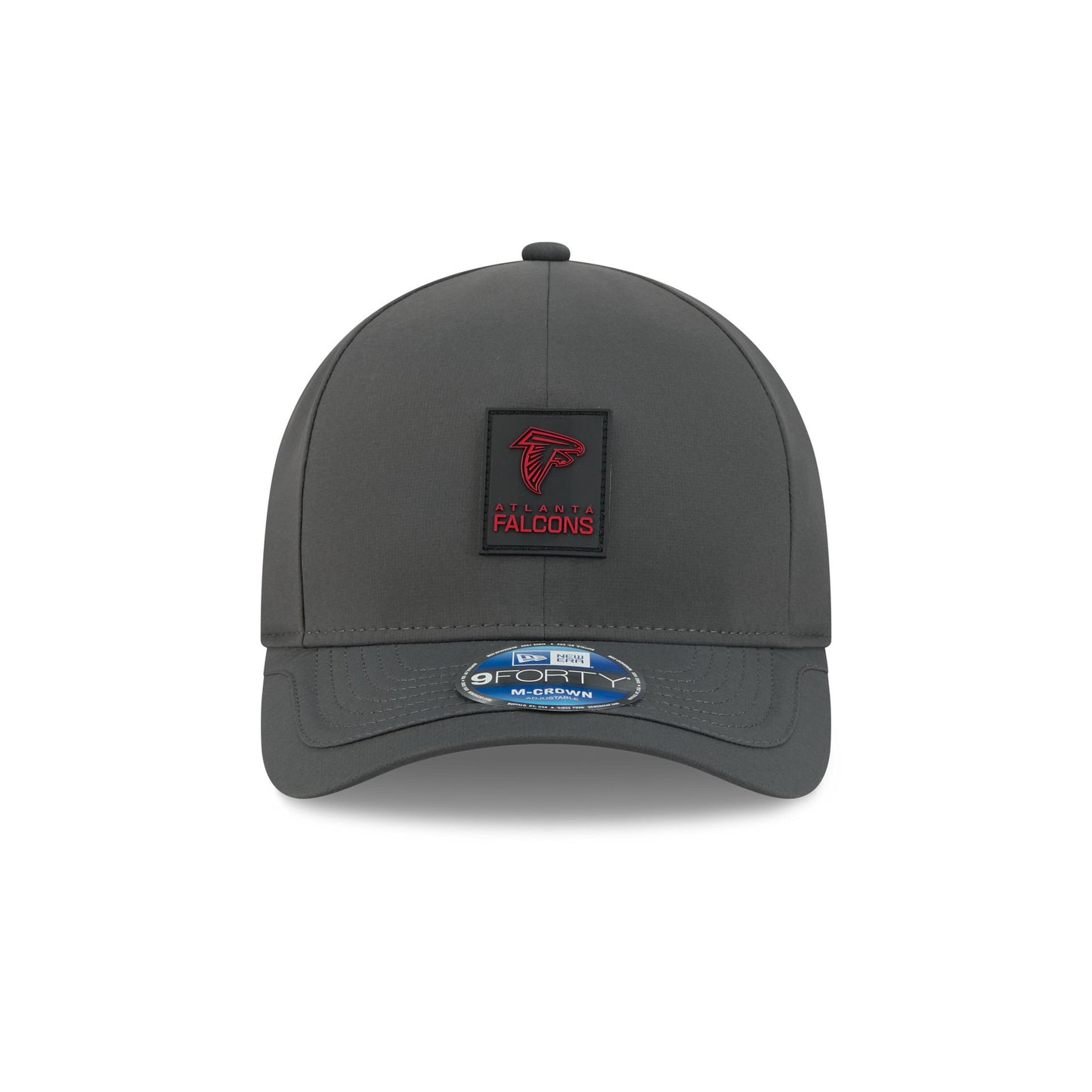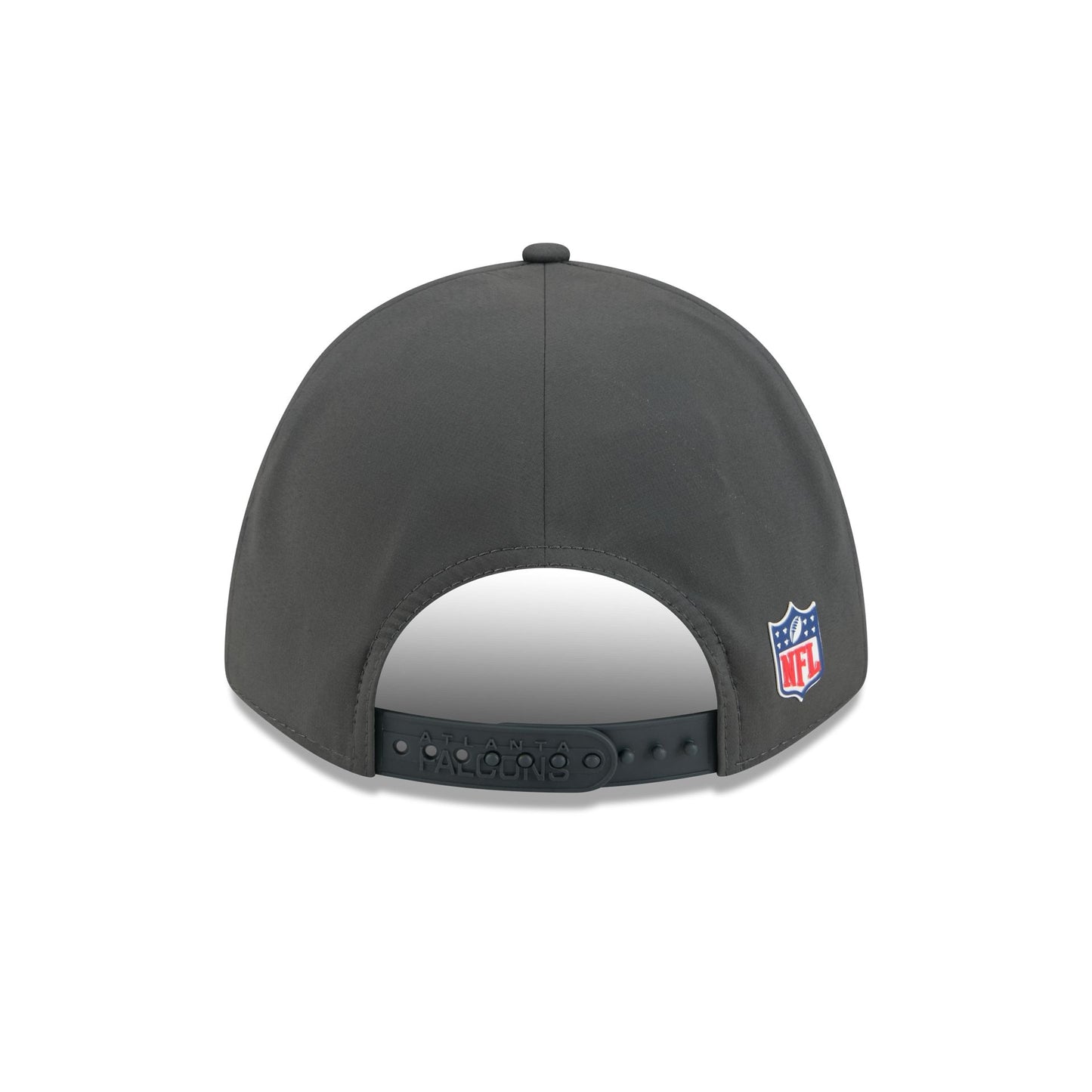 The Atlanta Falcons 2025 Sideline Cold Weather Steel Clouds 9FORTY M-Crown Snapback features a sewn-down silicone Falcons logo patch at the front panels with a water-repellent quill tech fabrication throughout and a quick-dry cushioned sweatband to absorb moisture. Additional details include the Official NFL Shield logo to the right of a soft silicone snapback closure at the rear. The crown has bonded seams to trap warmth and the undervisor is accented with a silicone transfer in the team’s colors.