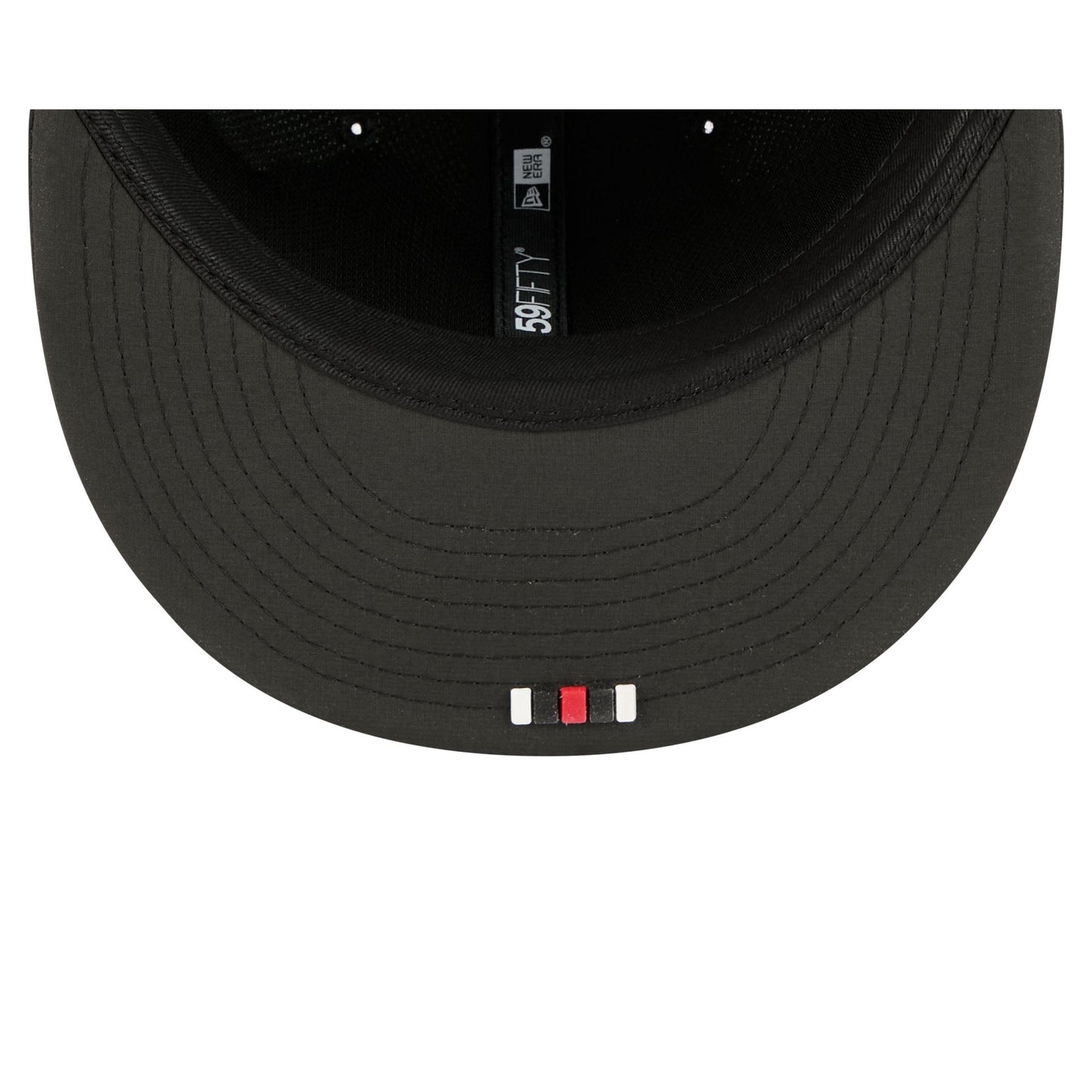 The Atlanta Falcons 2025 Sideline Hot Weather 59FIFTY Fitted Cap features a sewn-down silicone Falcons logo patch at the front panels with the Official NFL Shield logo at the rear. The cap has a water-repellent quill tech fabrication throughout, with a quick-dry cushioned sweatband to absorb moisture. The undervisor is accented with a silicone transfer in the team’s colors.