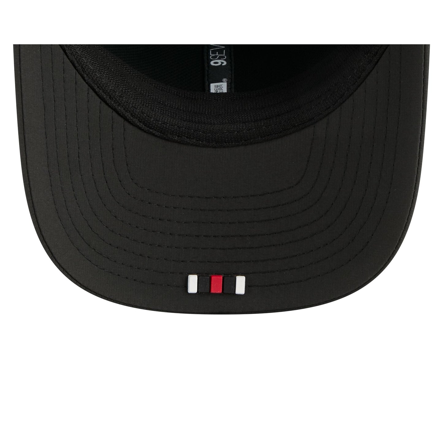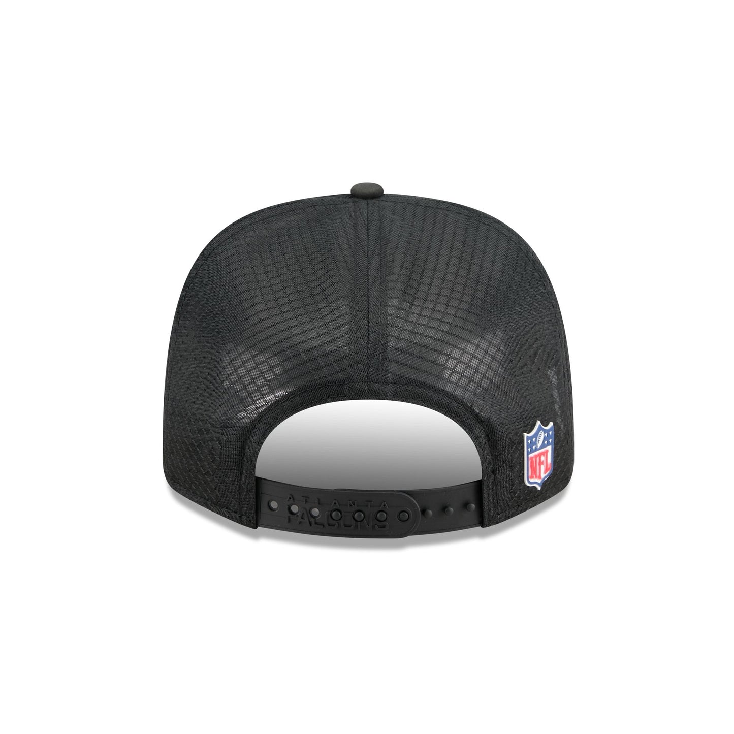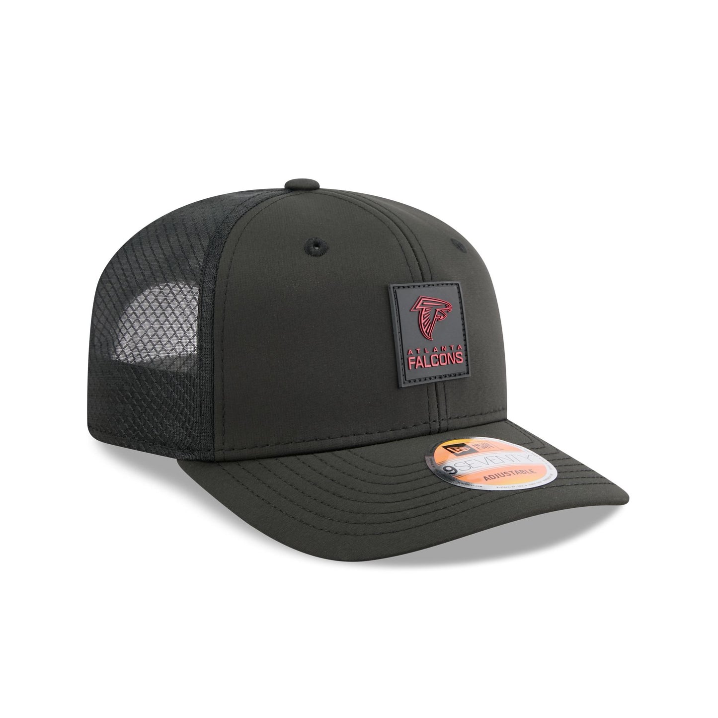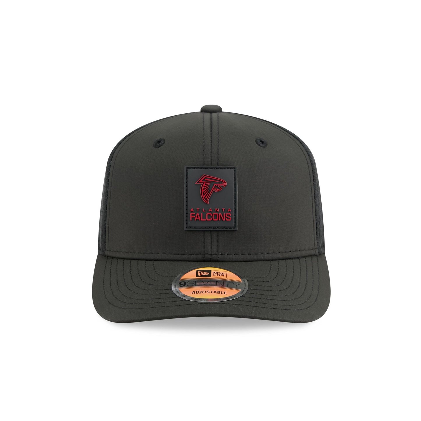 The Atlanta Falcons 2025 Sideline Hot Weather 9SEVENTY Trucker features a sewn-down silicone Falcons logo patch at the front panels with a water-repellent quill tech fabrication throughout and a quick-dry cushioned sweatband to absorb moisture. Additional details include the Official NFL Shield logo to the right of a soft silicone snapback closure at a light-weight mesh rear. The undervisor is accented with a silicone transfer in the team’s colors.