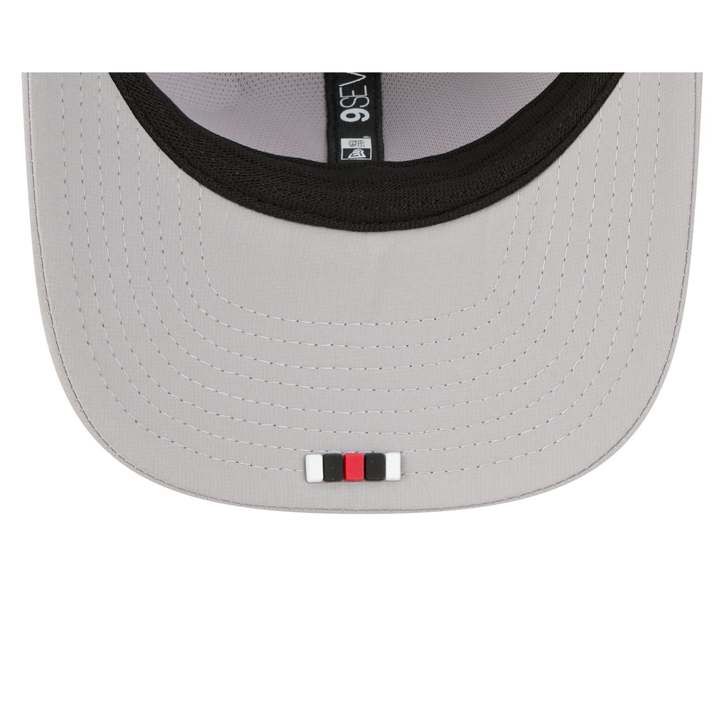 The Atlanta Falcons 2025 Sideline Hot Weather Gray 9SEVENTY Trucker features a sewn-down silicone Falcons logo patch at the front panels with a water-repellent quill tech fabrication throughout and a quick-dry cushioned sweatband to absorb moisture. Additional details include the Official NFL Shield logo to the right of a soft silicone snapback closure at a light-weight mesh rear. The undervisor is accented with a silicone transfer in the team’s colors.