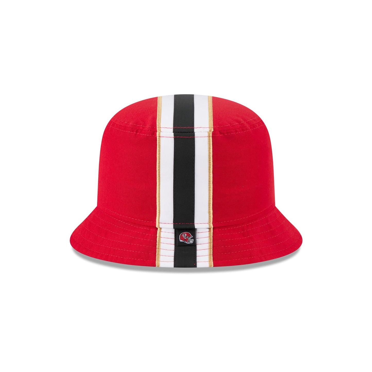 The Atlanta Falcons Historic Helmet Bucket Hat features an embroidered Falcons helmet design throughout.