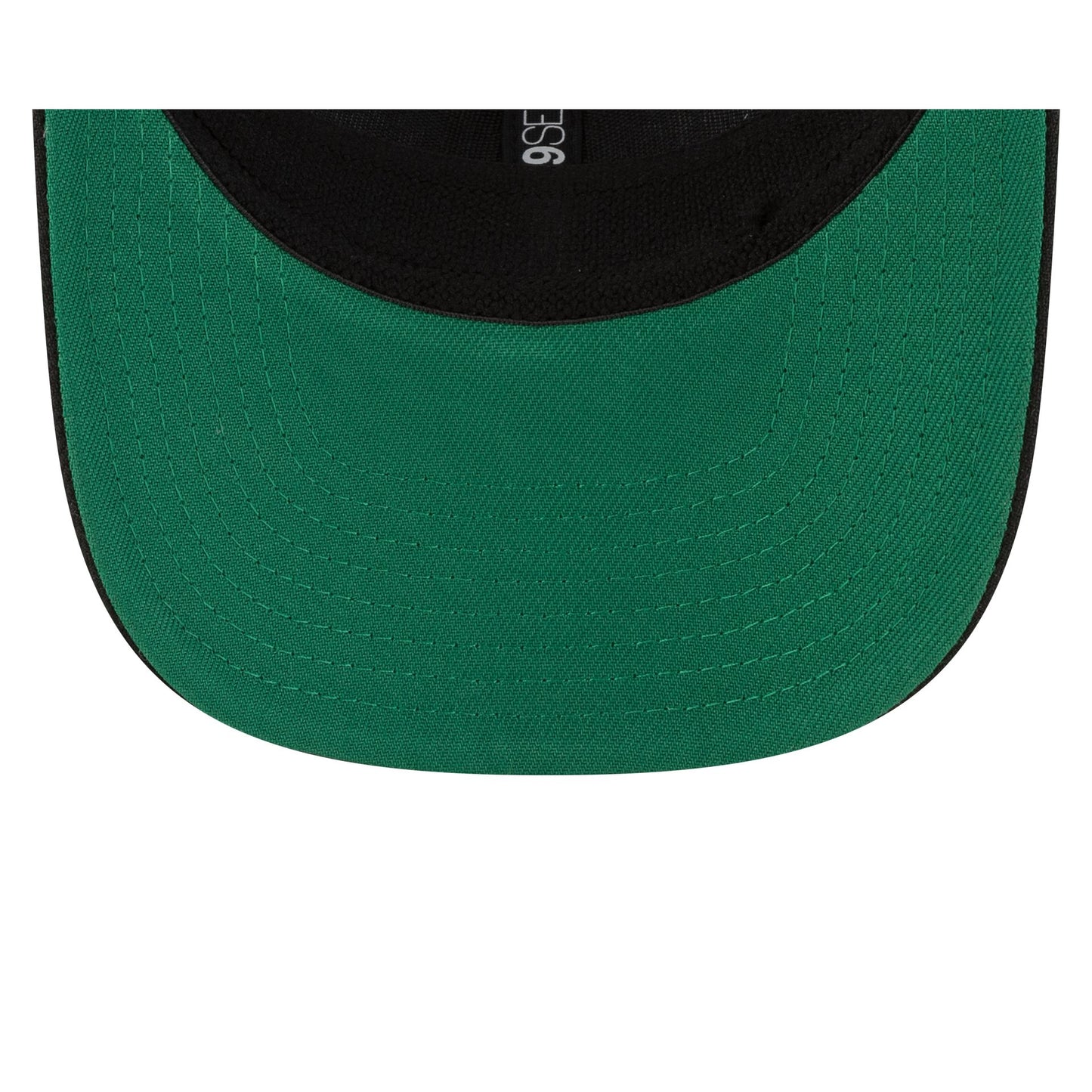 The Atlanta Falcons Mascot 9SEVENTY Trucker features an embroidered Falcons mascot at the front panels with a matching team logo at the right-wear side, an adjustable snapback closure at the rear, and a green undervisor.