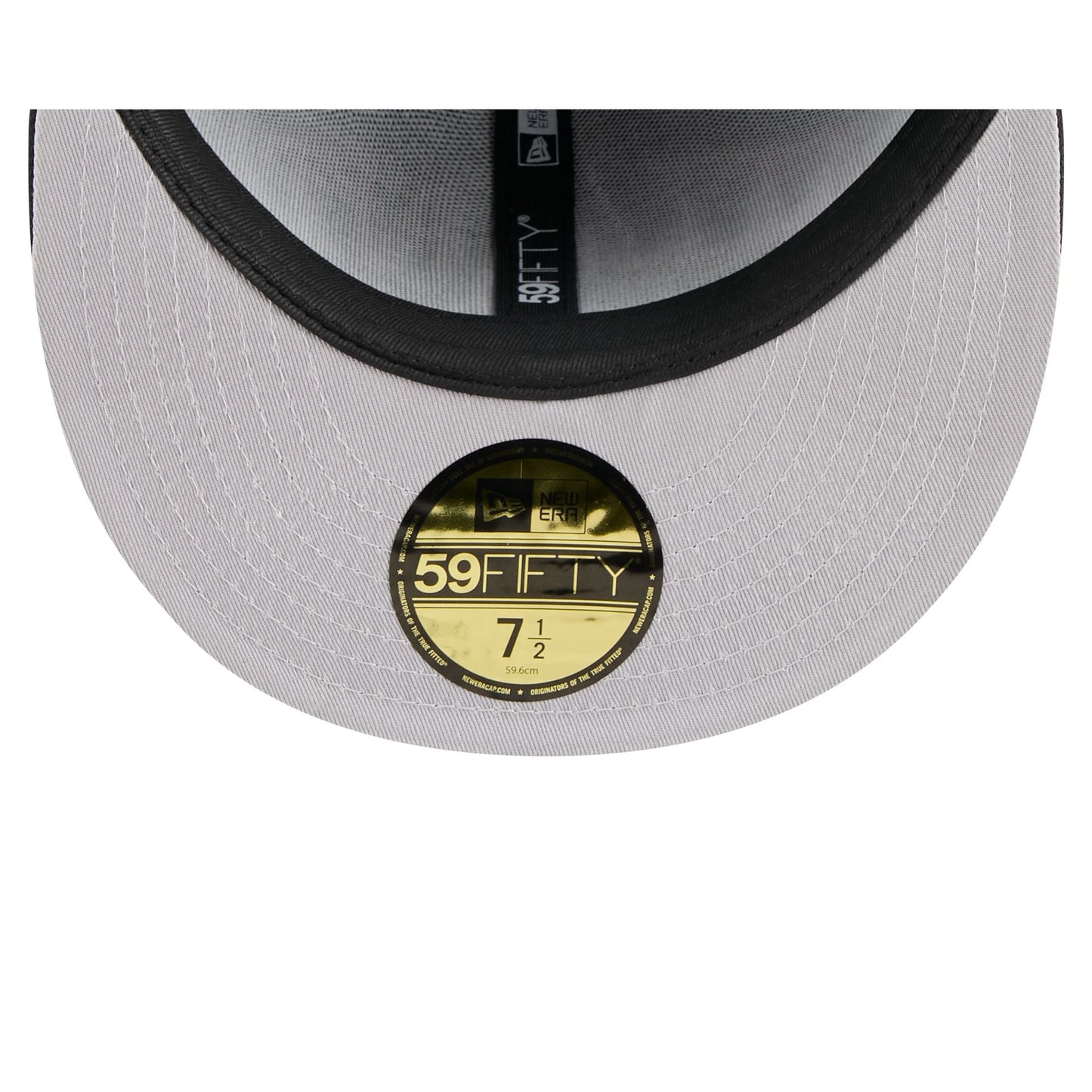 The Atlanta Falcons Oversized 59FIFTY Fitted Cap features an embroidered Falcons Historic oversized graphic at the front panels and visor. Additional details include a logo at the right-wear side, an NFL Shield logo at the rear, and a gray undervisor.