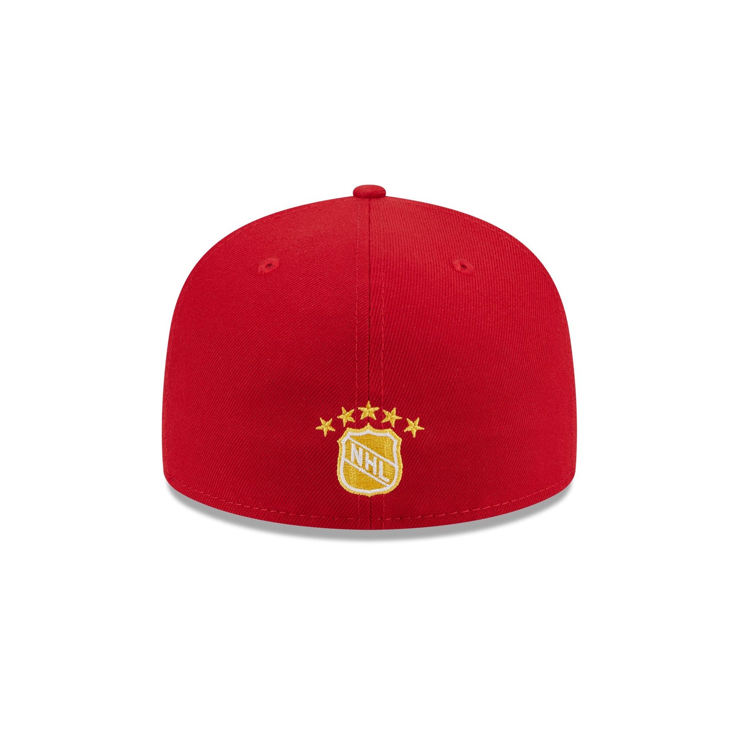 The Atlanta Flames Oversized 59FIFTY Fitted Cap features an embroidered Flames Historic oversized graphic at the front panels and visor. Additional details include an NHL Shield logo at the rear and a gray undervisor.