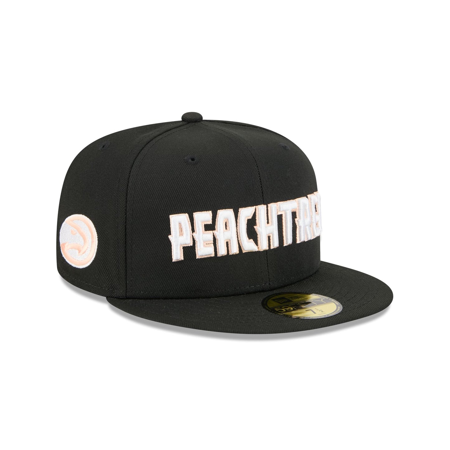 The Atlanta Hawks 2025 City Edition 59FIFTY Fitted Cap features an embroidered Hawks City Edition logo at the front panels with a logo at the right-wear side. Additional details include the NBA Logoman at the rear and a gray undervisor.