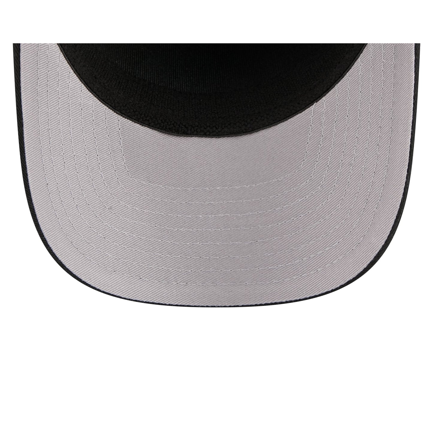The Atlanta Hawks Split Panel 9SEVENTY Stretch-Snap features an embroidered Hawks logo at the front panel with a split crown construction and a rope at the visor. Additional details include an adjustable stretch-snap closure at the rear and a gray undervisor.