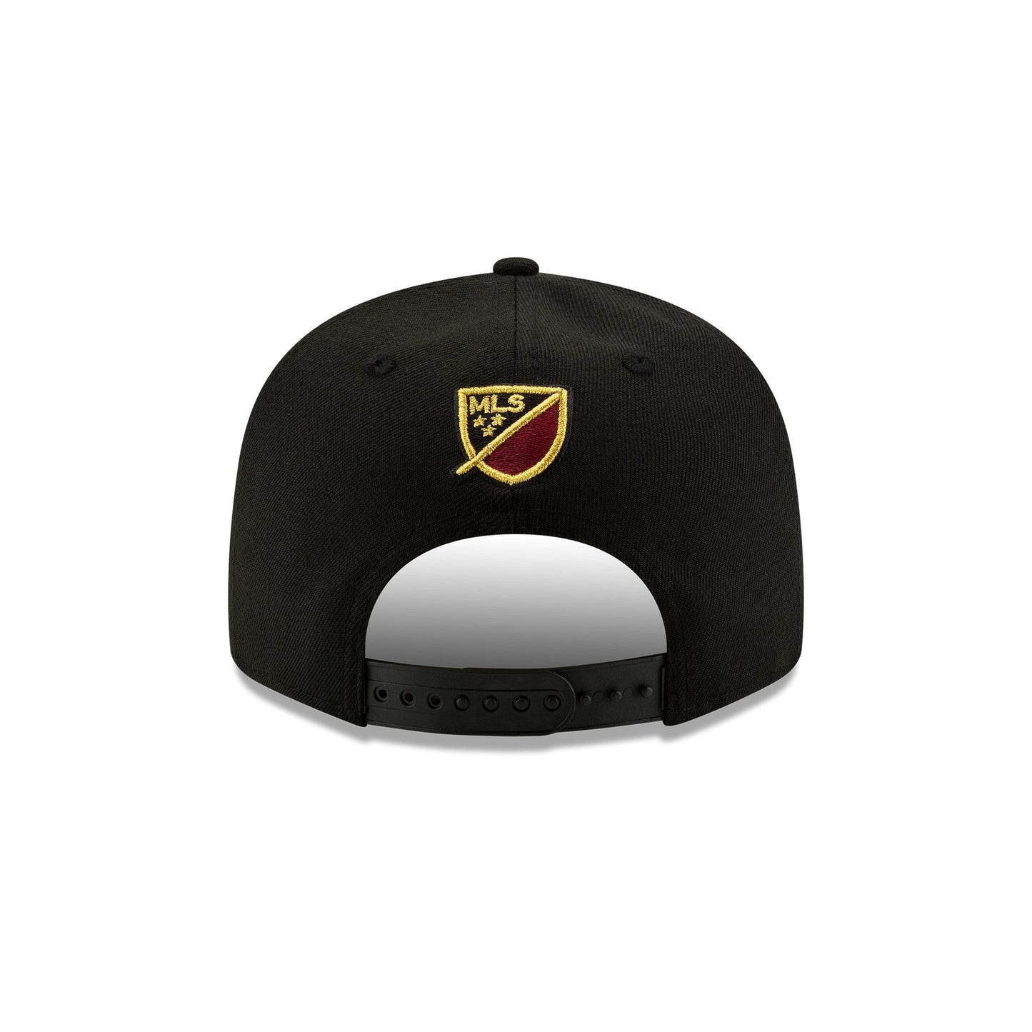 The Atlanta United FC Black 9FIFTY Snapback features an embroidered Atlanta United FC logo at the front panels with a matching MLS logo above a snapback closure at the rear.