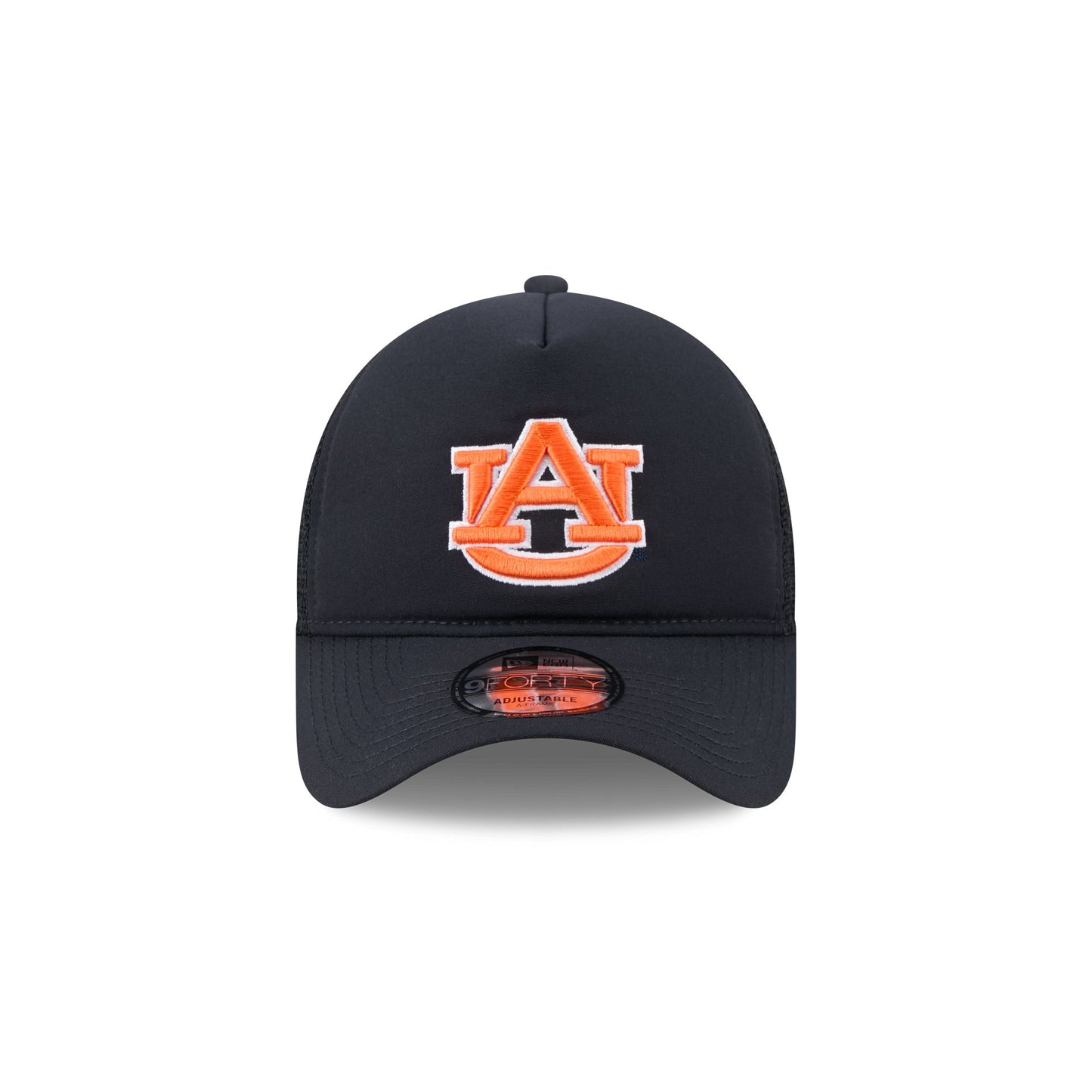 The Auburn Tigers Go-To 9FORTY A-Frame Trucker features an embroidered Tigers logo at the front panels with a snapback closure at a mesh rear.