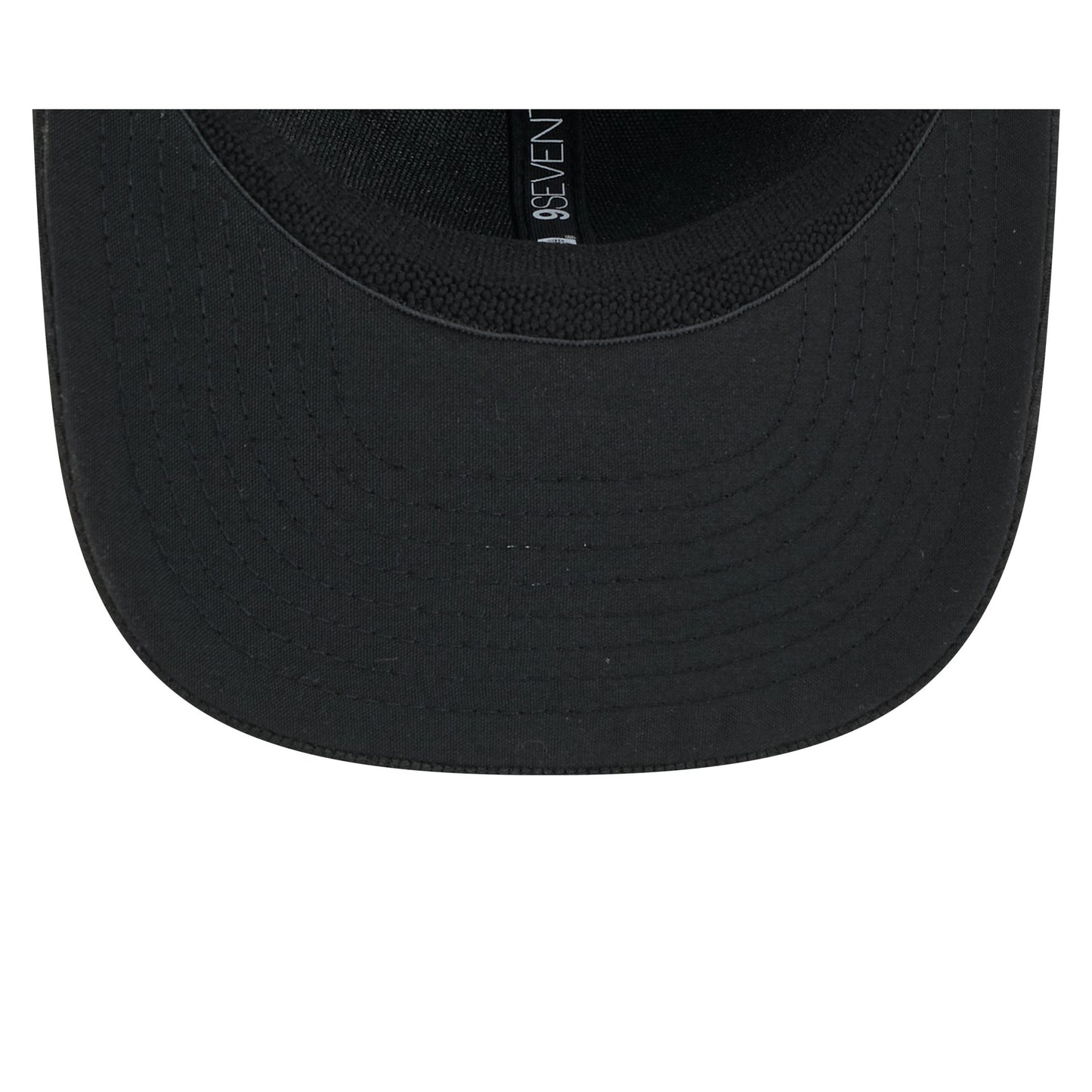 The Austin FC 2025 Jersey Hook 9SEVENTY Stretch-Snap features an embroidered Austin logo at the front panels with a side patch at the right-wear side. Additional details include a wordmark above a snapback closure at the rear.