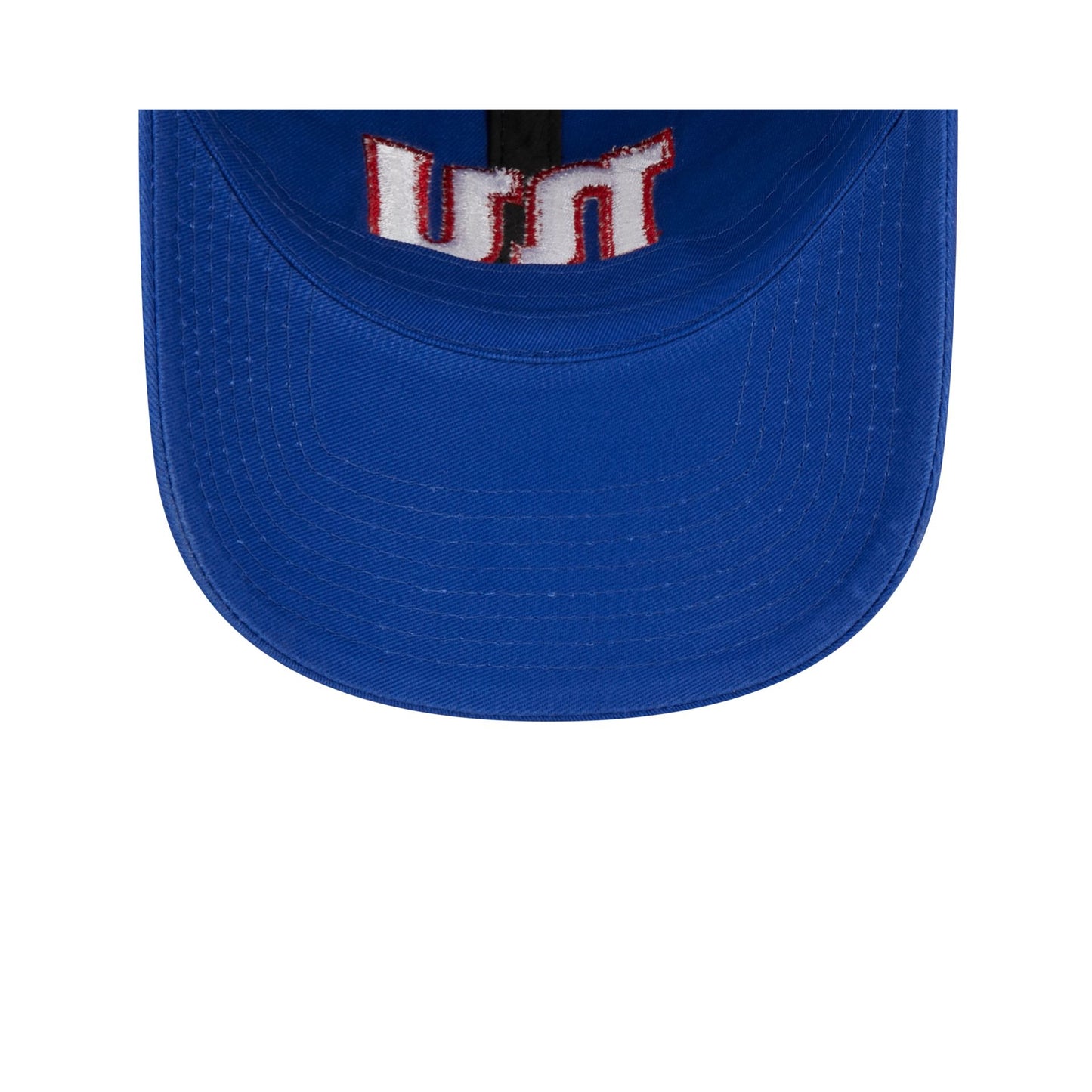 The Bad Bunny x New York Giants Concho Casual Classic Adjustable Cap features an embroidered Giants logo at the front panels with a Sapo Concho football character at the right-wear side. Additional details include the NFL Shield logo above an adjustable D-Ring closure at the rear.