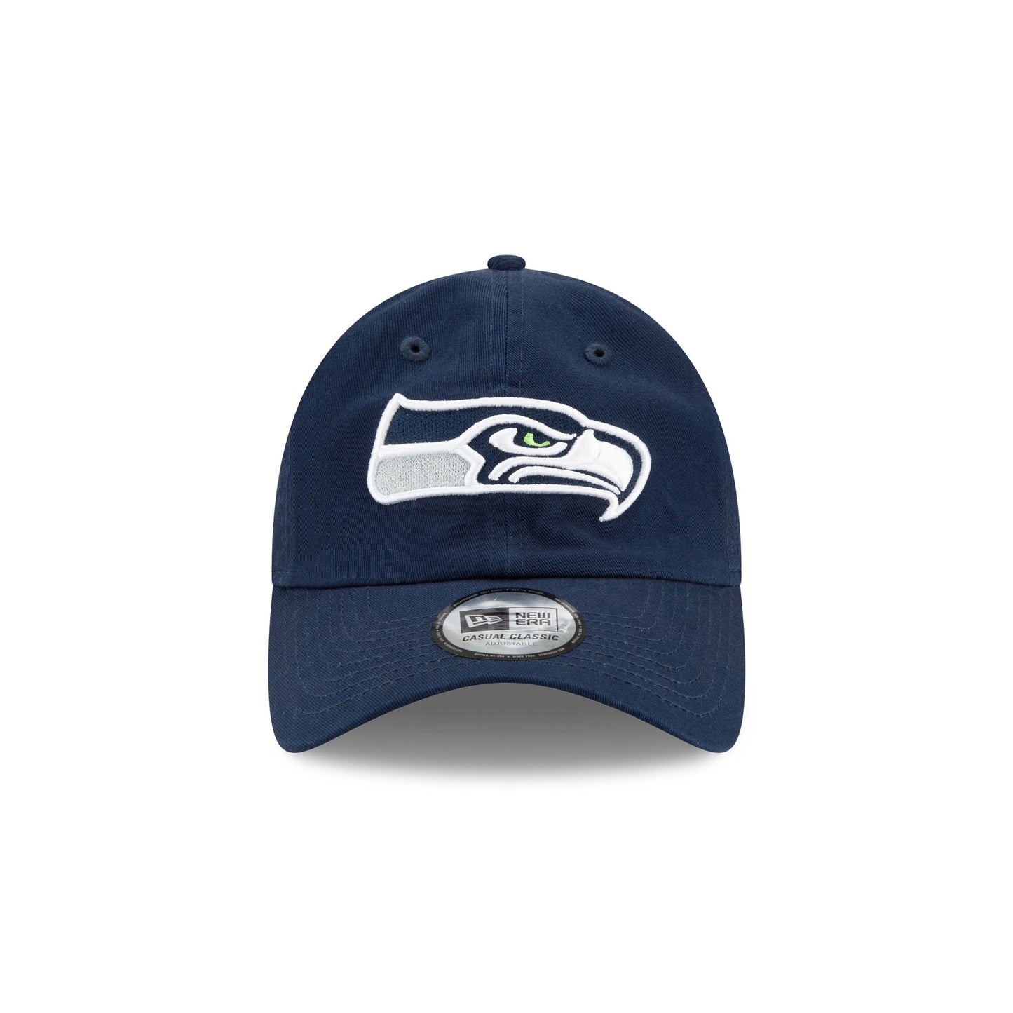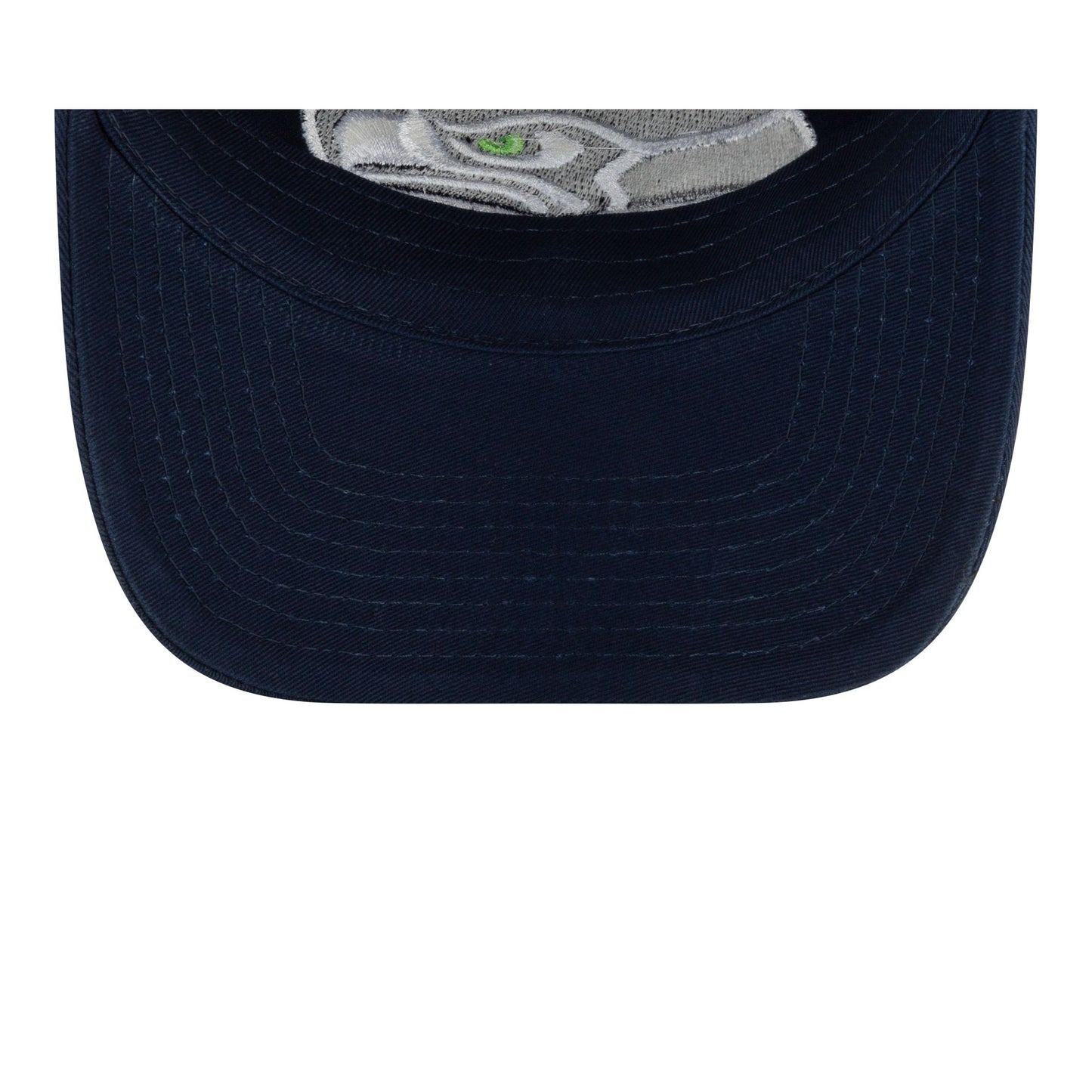 The Bad Bunny x Seattle Seahawks Concho Casual Classic Adjustable Cap features an embroidered Seahawks logo at the front panels with a Sapo Concho football character at the right-wear side. Additional details include the NFL Shield logo above an adjustable D-Ring closure at the rear.