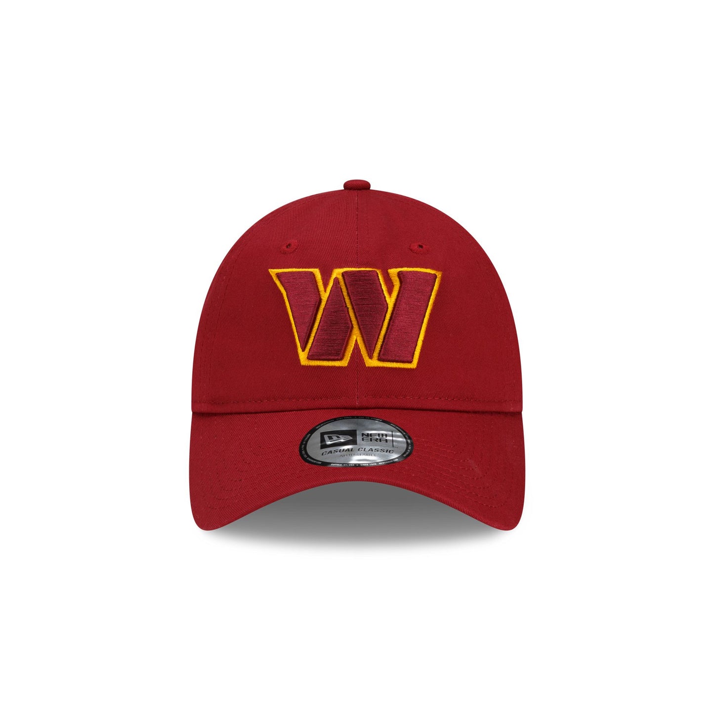 The Bad Bunny x Washington Commanders Concho Casual Classic Adjustable Cap features an embroidered Commanders logo at the front panels with a Sapo Concho football character at the right-wear side. Additional details include the NFL Shield logo above an adjustable D-Ring closure at the rear.