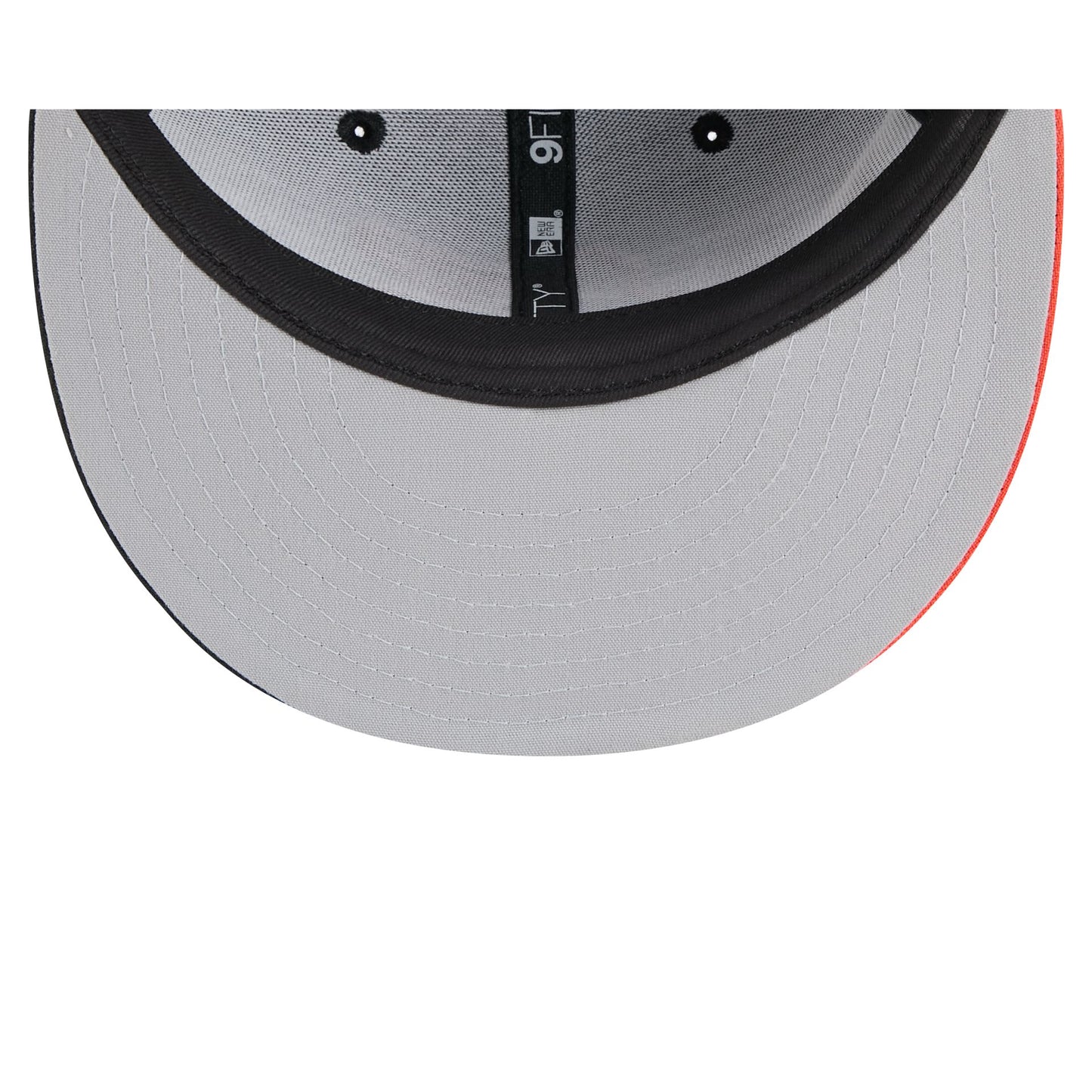 The Baltimore Orioles Adley Rutschman 9FIFTY Snapback features an embroidered Orioles logo at the front panels with the player's name and number at the right-wear side. Additional details include a snapback closure at the rear and a gray undervisor.