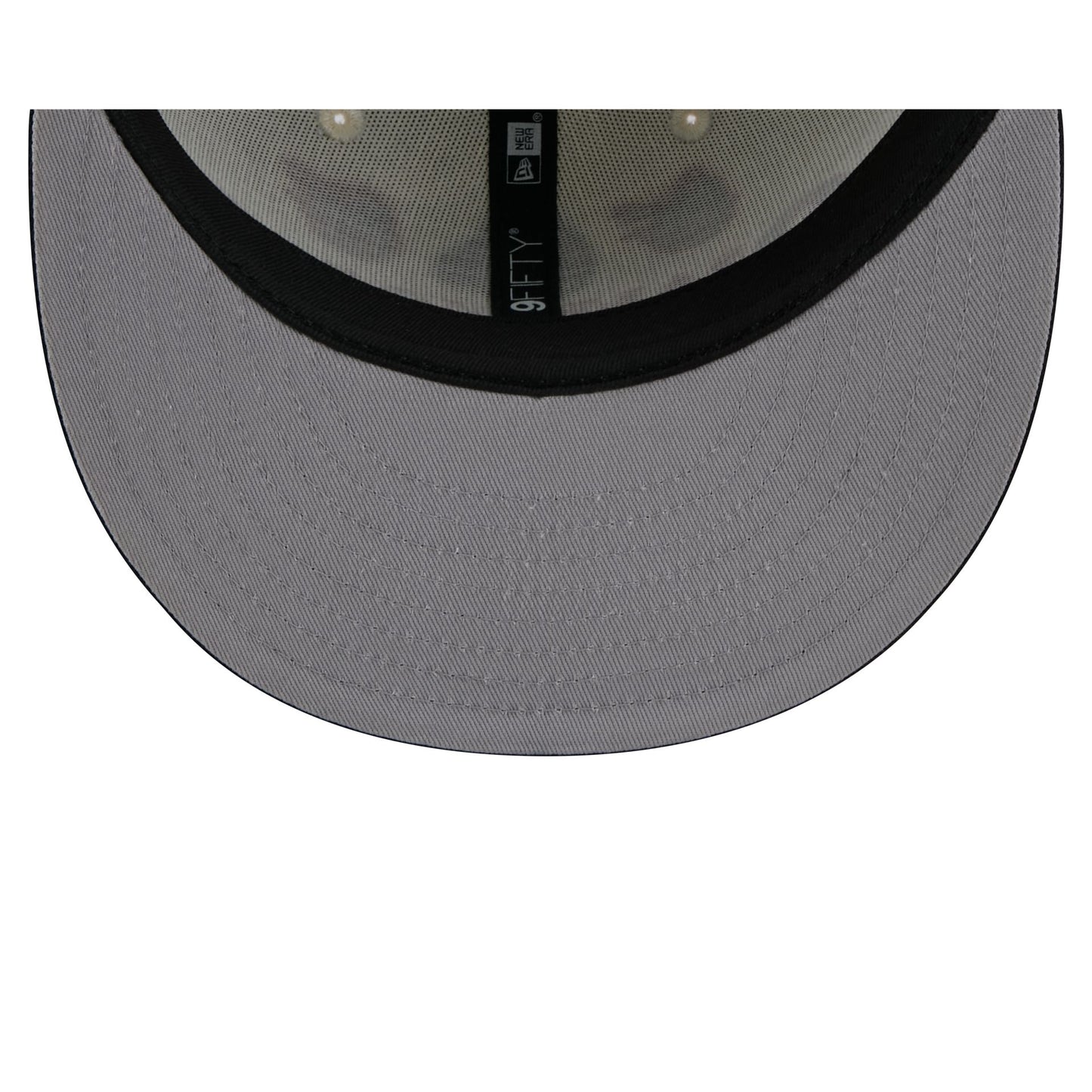 The Baltimore Orioles Archive 9FIFTY Snapback features an embroidered Orioles wordmark and various team logos at the front panels with a snapback closure at the rear and a gray undervisor.