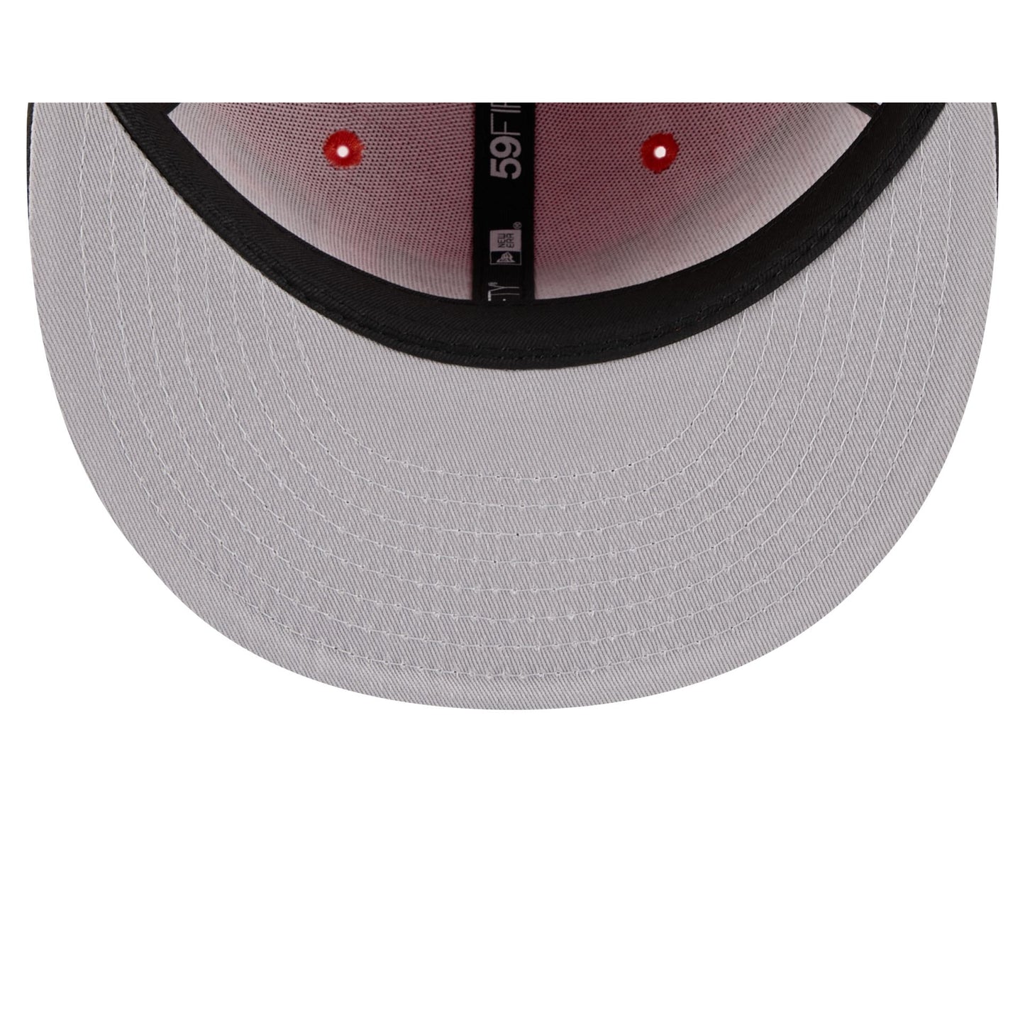 The Baltimore Orioles Bold Satin 59FIFTY Fitted Cap features an embroidered satin Orioles Historic graphic at the front panels with a satin fabrication throughout. Additional details include a matching MLB Batterman logo at the rear and a gray undervisor.