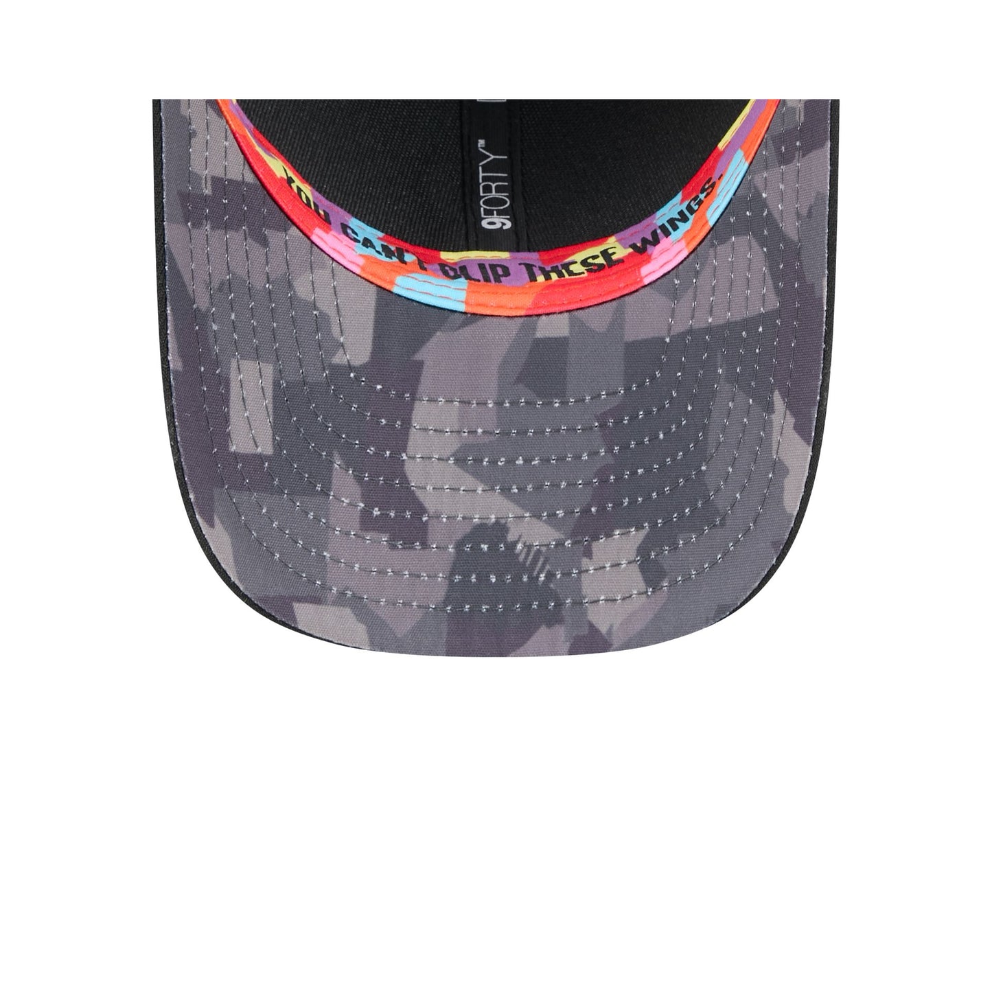 The Baltimore Orioles City Connect 9FORTY M-Crown Snapback features an embroidered Orioles logo at the front panels with an MLB Batterman logo above a snapback closure at the rear.