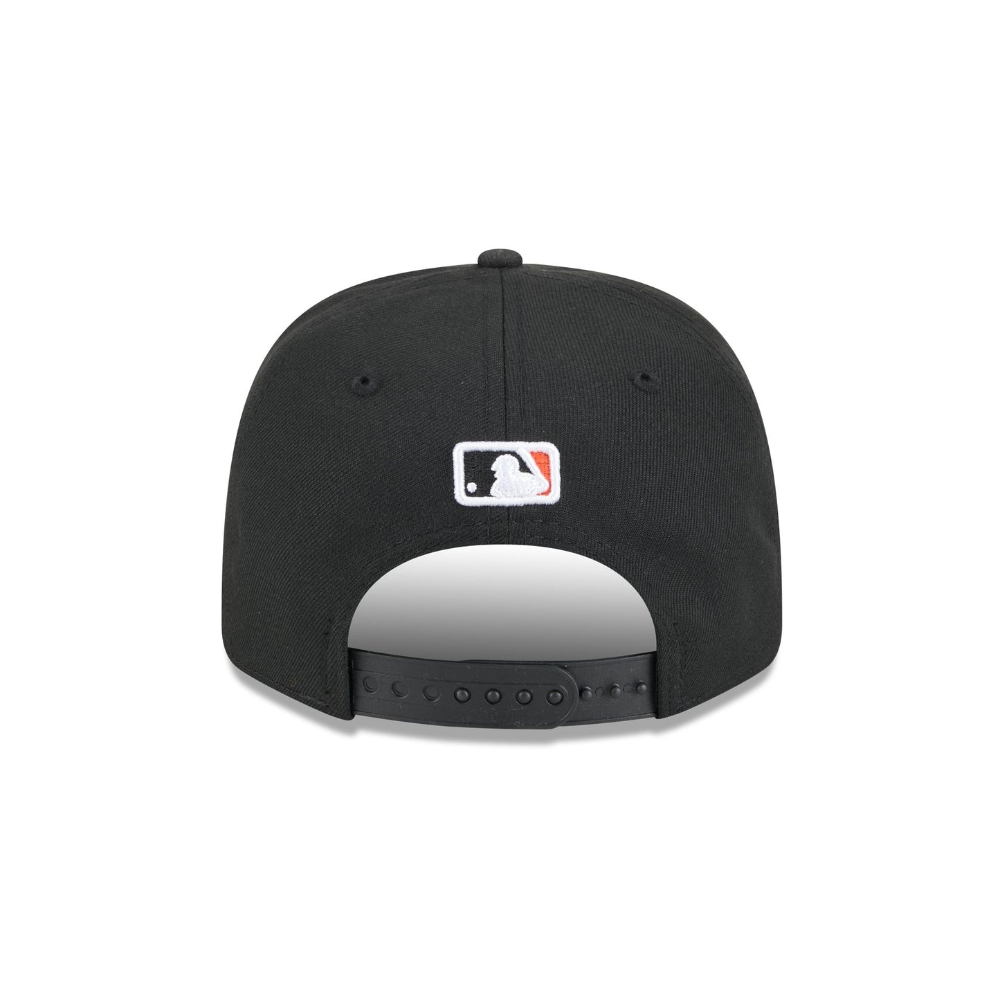 The Baltimore Orioles City Connect 9SEVENTY Stretch-Snap features an embroidered Orioles logo at the front panels with an MLB Batterman logo above a snapback closure at the rear and a camo undervisor.