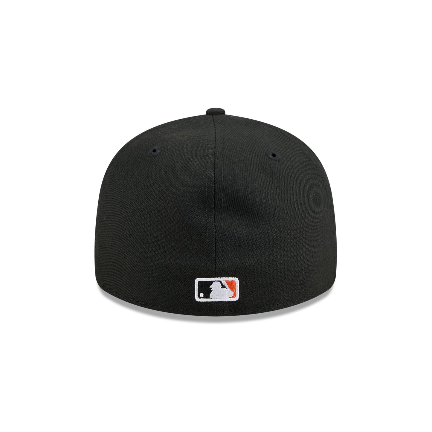 The Baltimore Orioles Easy Retro Crown 59FIFTY A-Frame Fitted features an embroidered Orioles logo at the front panel with a matching MLB Batterman logo at the rear and a gray undervisor.