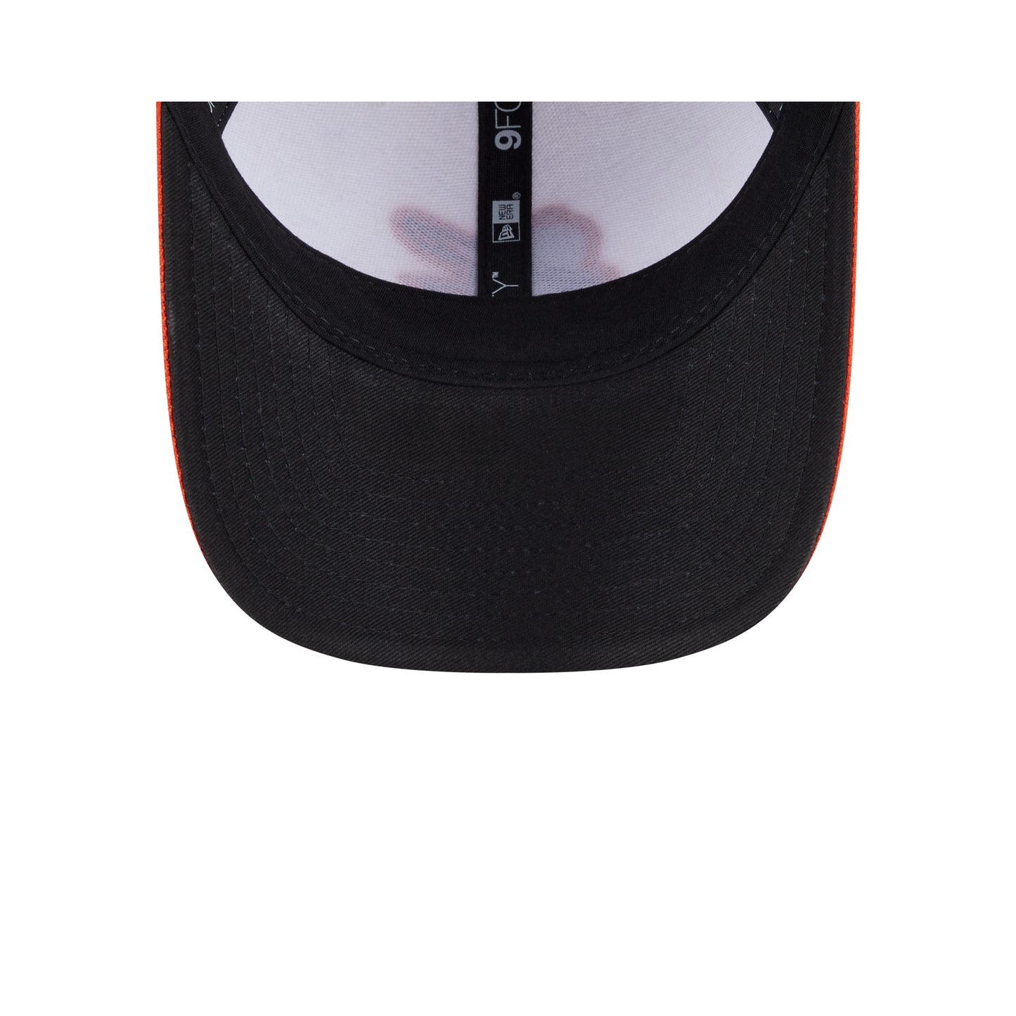 The Baltimore Orioles Home 9FORTY M-Crown Snapback features an embroidered Orioles logo at the front panels with a matching MLB Batterman logo above a snapback closure at the rear and a black undervisor.