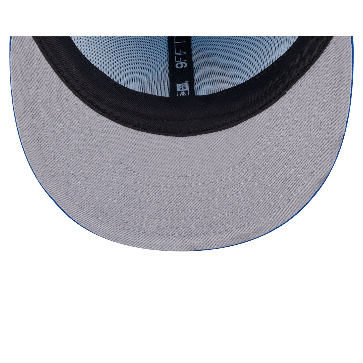 The Baltimore Orioles Independence Day 2025 9FIFTY Snapback features an embroidered American flag themed Orioles logo at the front panels with a matching MLB Batterman logo above a snapback closure at the rear, a blue visor, and a gray undervisor.