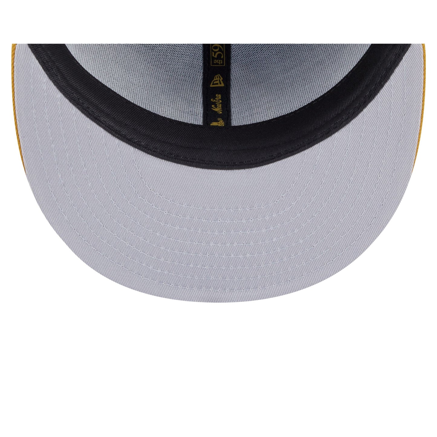 The Baltimore Orioles Metallic Gold Logo 59FIFTY Fitted Cap features an embroidered gold Orioles logo at the front panels with a matching MLB Batterman logo at the rear. Additional details include a gold visor and a gray undervisor.