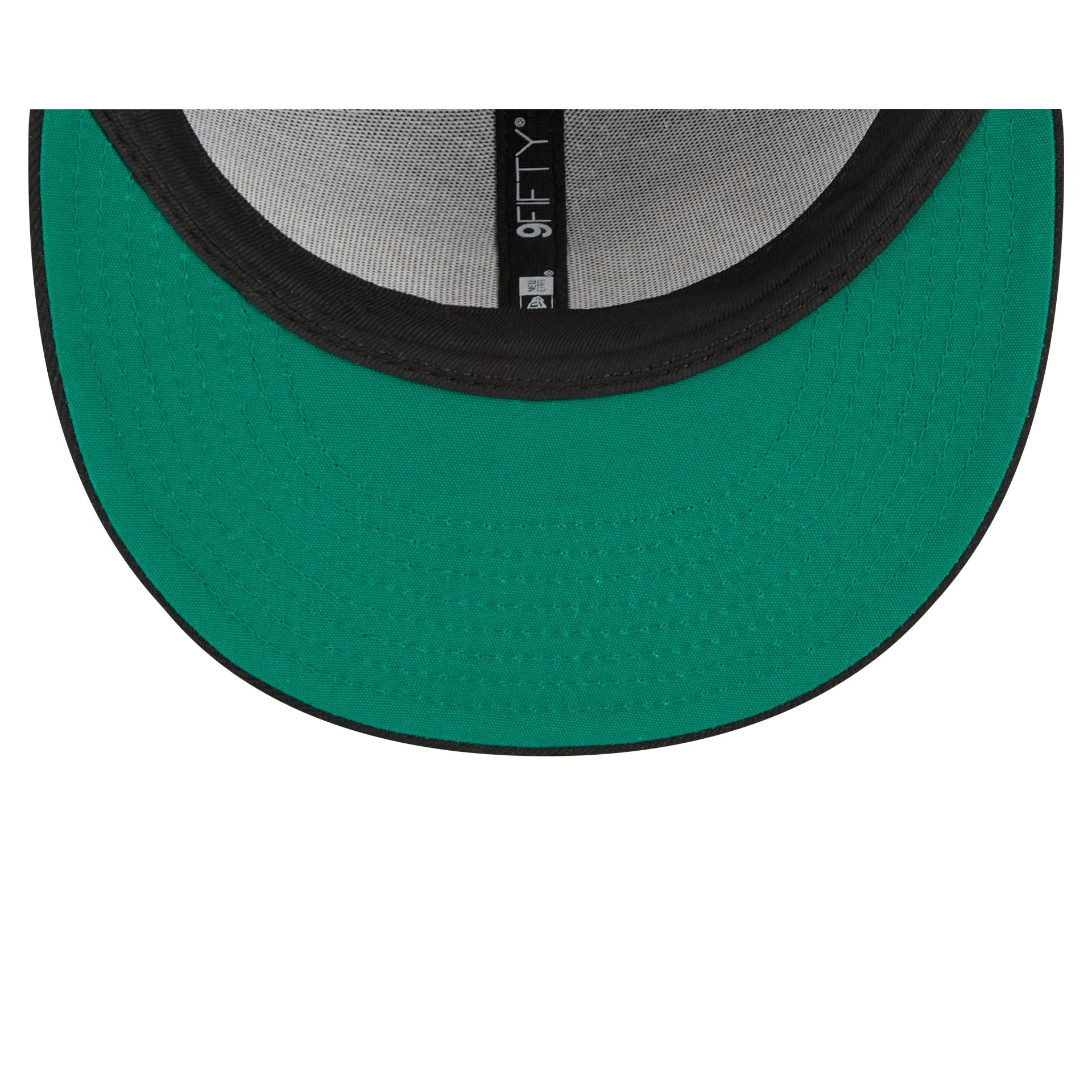 The Baltimore Orioles Post-Up Pin 9FIFTY Snapback features a sport mesh fabrication with an embroidered Orioles wordmark at the front panels, a 60 year patch at the right-wear side, and a snapback closure at the rear. Additional details include a baseball character pin at the left-wear side and a green undervisor.