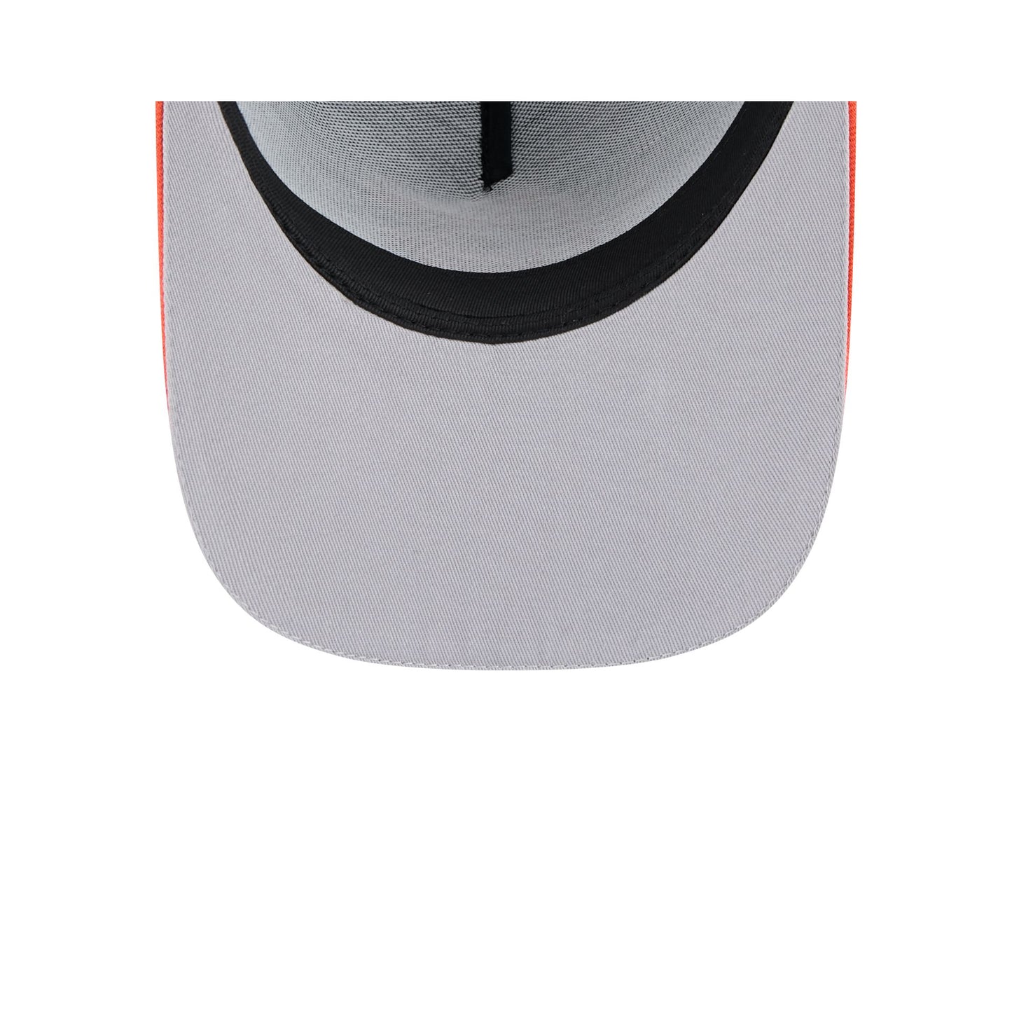 The Baltimore Orioles Vintage Team Rope 9FIFTY A-Frame Trucker features an embroidered Orioles Cooperstown logo at the front panels with a snapback closure at a mesh rear and a gray undervisor.