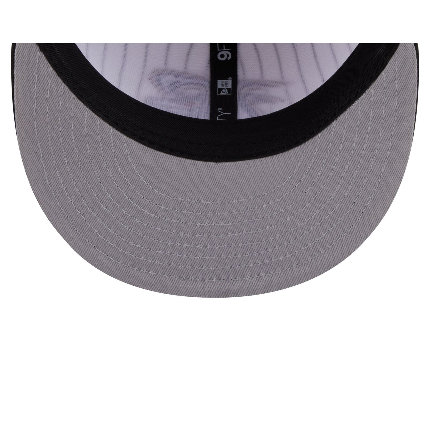 The Baltimore Ravens Deceptor 9FIFTY Snapback features an embroidered Ravens deceptive logo at the front panels with a team logo at the right-wear side. Additional details include a snapback closure at the rear and a gray undervisor.