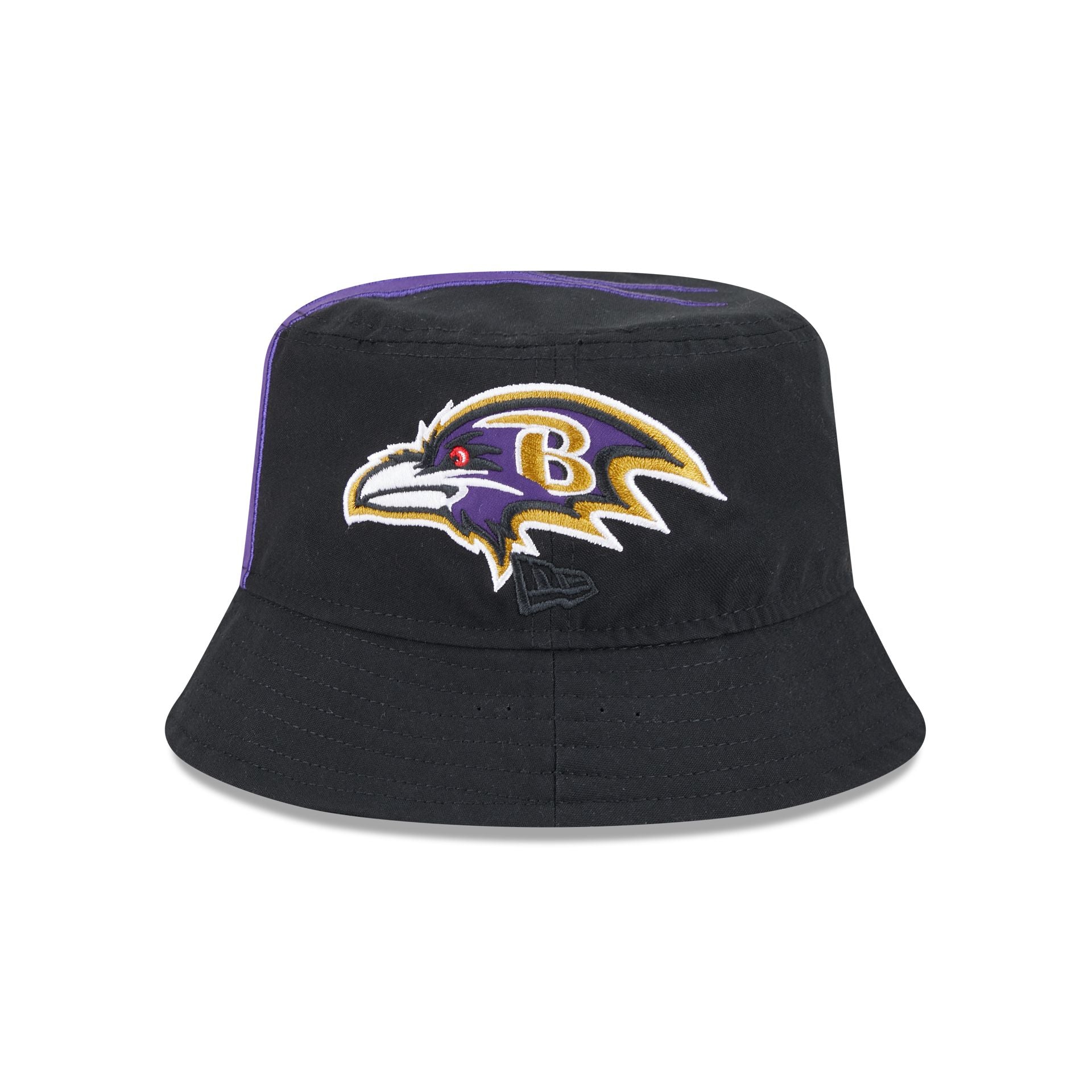 The Baltimore Ravens Kids Helmet Bucket Hat features an embroidered team helmet design throughout the hat with a team tag at the rear.