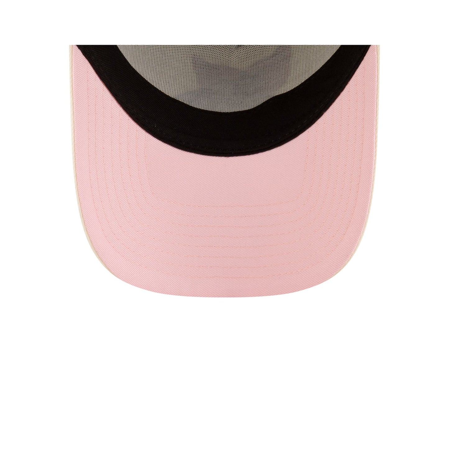 The Batman Cat Love 9FORTY A-Frame Snapback features an embroidered Cat Woman and Batman embrace at the front panels with a snapback closure at the rear and a pink undervisor.