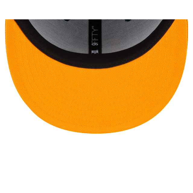The Baylor Bears 9FIFTY Snapback features an embroidered Bears logo at the front panels with a snapback closure at the rear. Additional details include a green crown, gold visor, and gold undervisor.