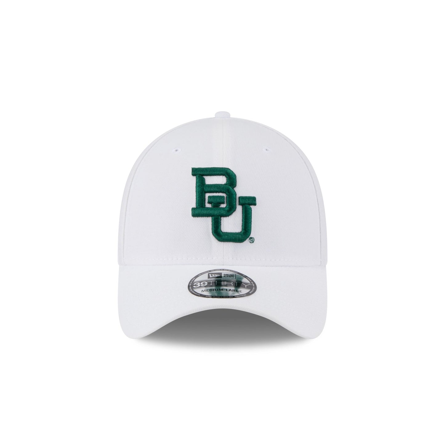 The Baylor Bears Optic White 39THIRTY Stretch Fit features an embroidered Bears logo at the front panels with a team wordmark at the rear.