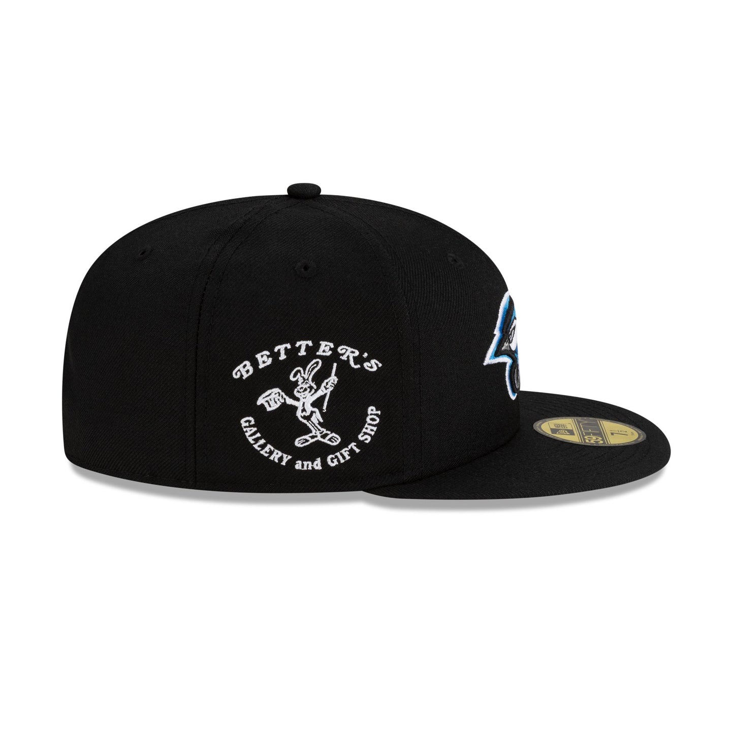 The Better Gift Shop x Toronto Blue Jays 59FIFTY Fitted Cap features an embroidered Blue Jays Cooperstown logo at the front panels with a Better's Gift Shop graphic at the right-wear side. Additional details include the MLB Batterman logo at the rear and a gray undervisor.