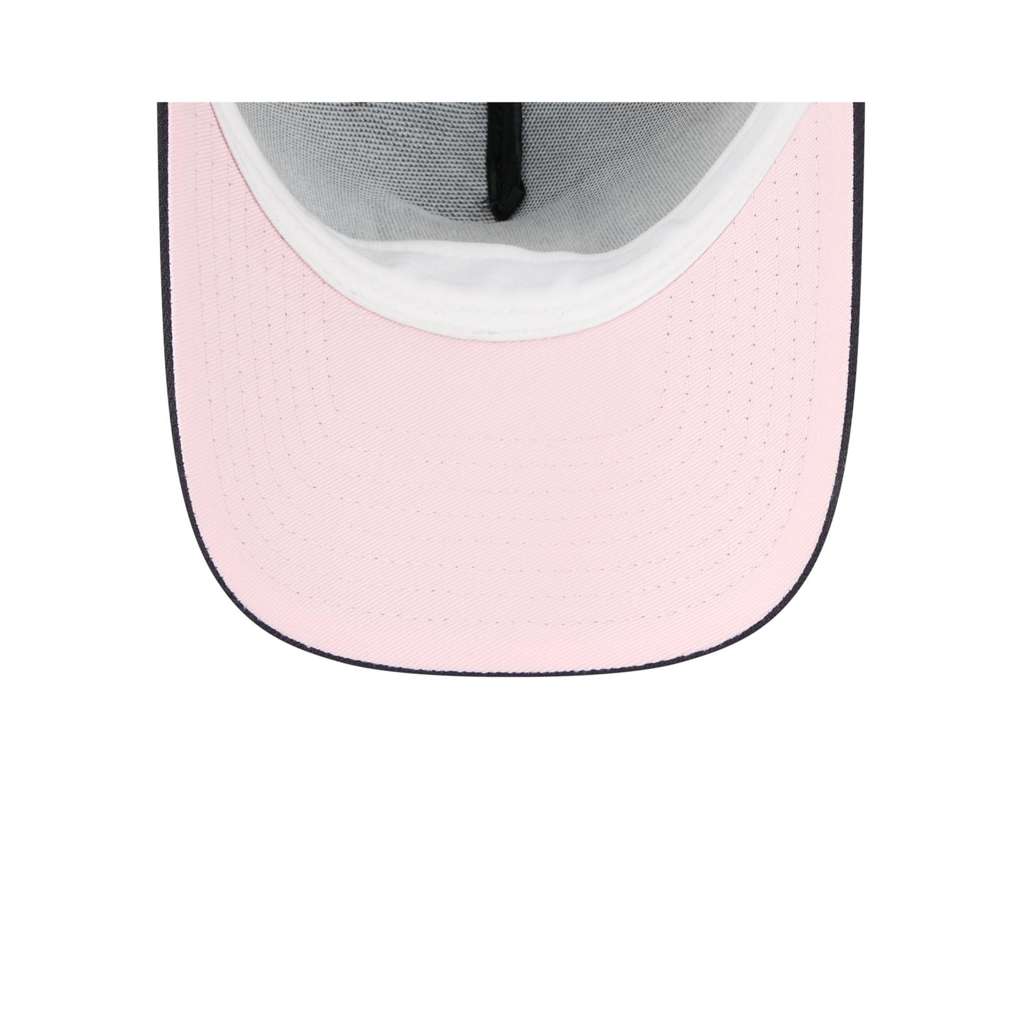 The Big League Chew x Baseball Hall of Fame 9FORTY A-Frame Trucker features an embroidered Baseball Hall of Fame logo and a Big League Chew pin at the front panel with an adjustable snapback closure at the rear and pink undervisor.