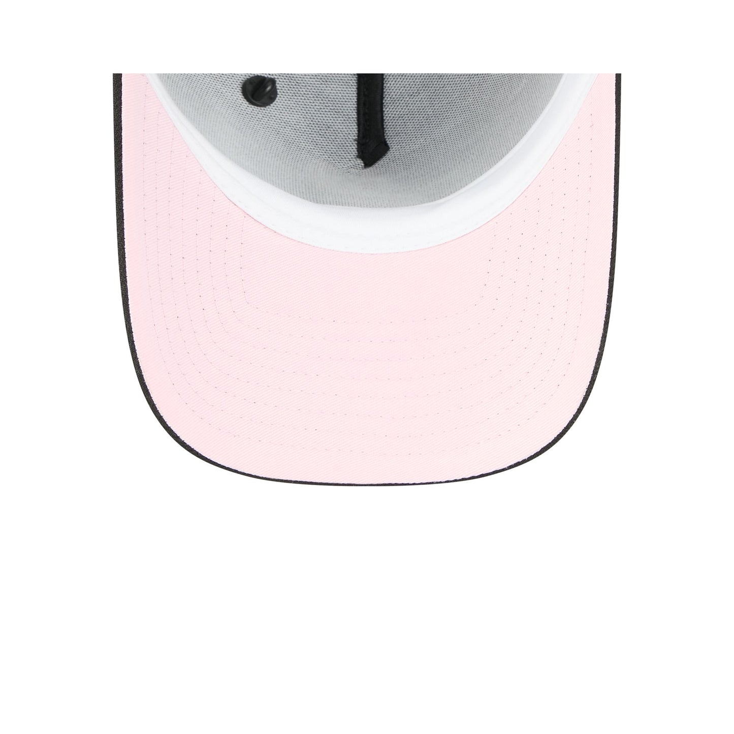 The Big League Chew x Chicago White Sox 9FORTY A-Frame Trucker features an embroidered White Sox mascot and a Big League Chew pin at the front panel with an adjustable snapback closure at the rear and pink undervisor.