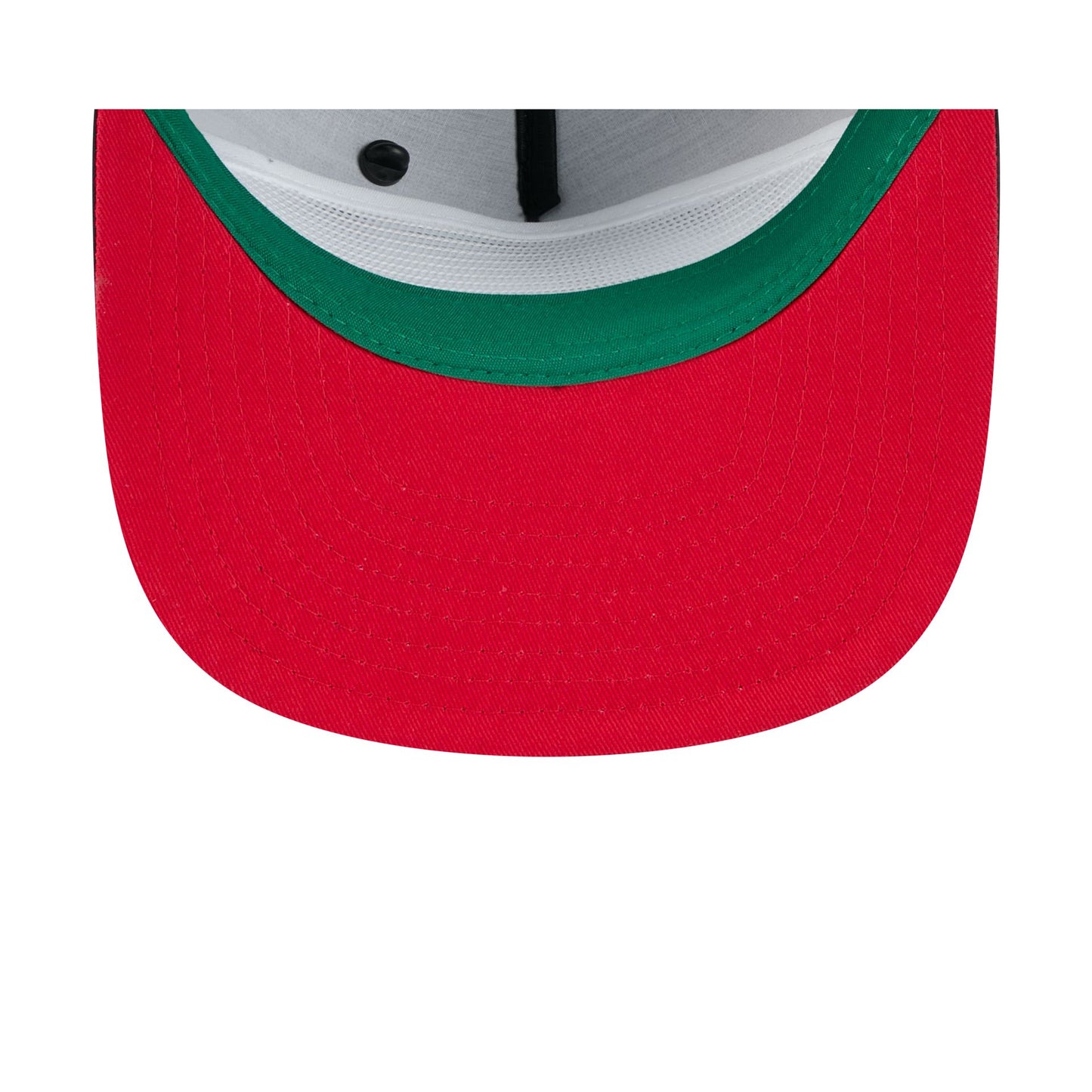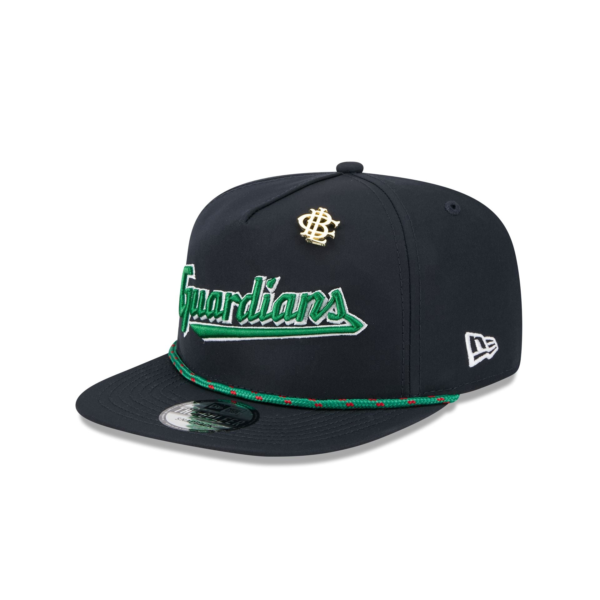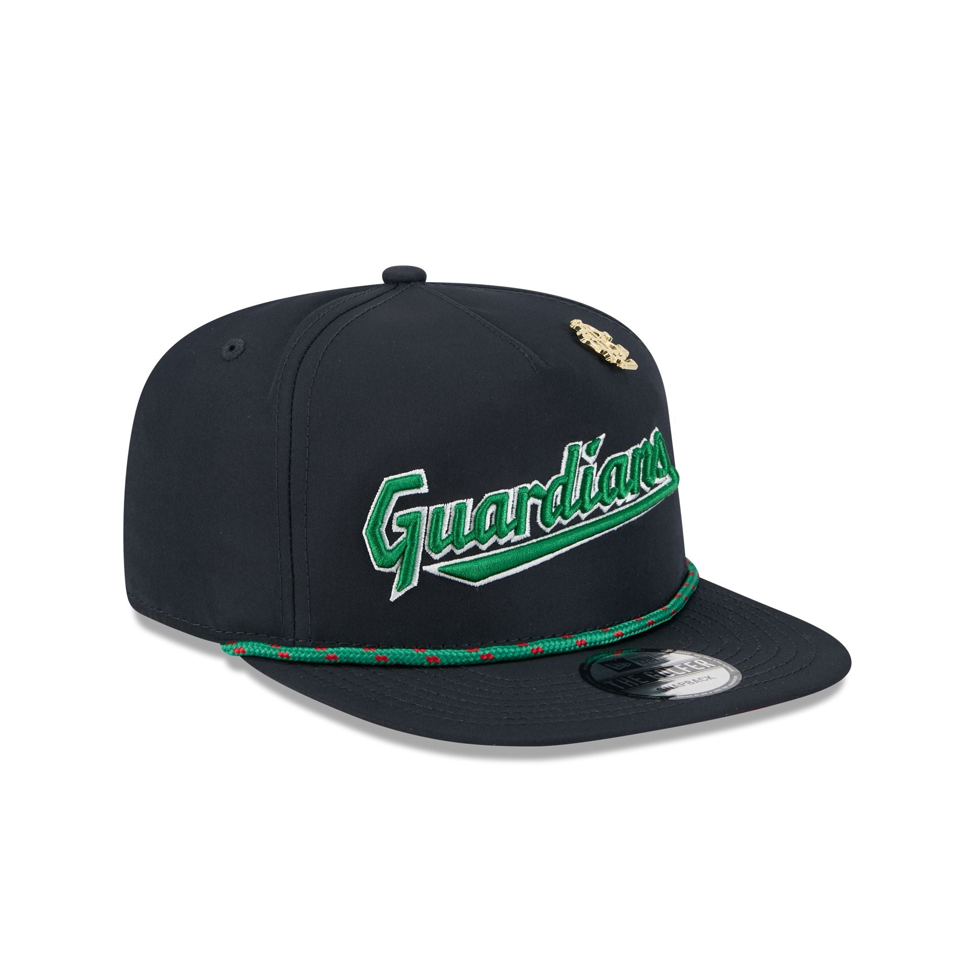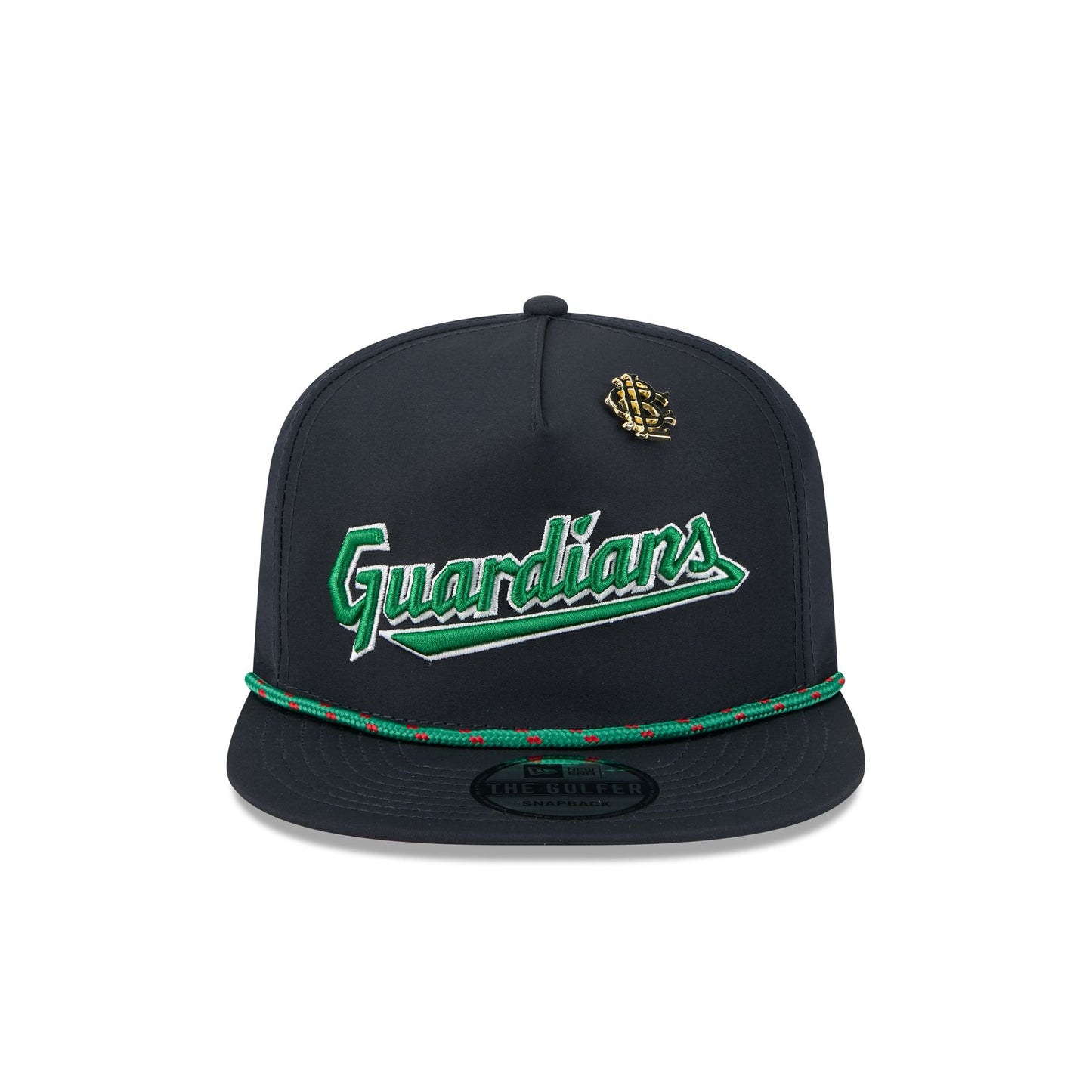 The Big League Chew x Cleveland Guardians Golfer features an embroidered Guardians wordmark and a Big League Chew pin at the front panel with an adjustable snapback closure at the rear and a red undervisor.