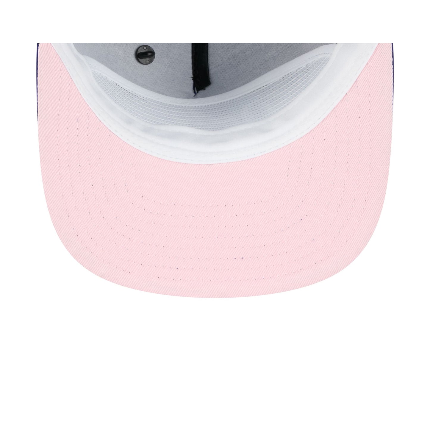The Big League Chew x Los Angeles Dodgers Golfer features an embroidered Dodgers wordmark and a Big League Chew pin at the front panel with an adjustable snapback closure at the rear and a pink undervisor.