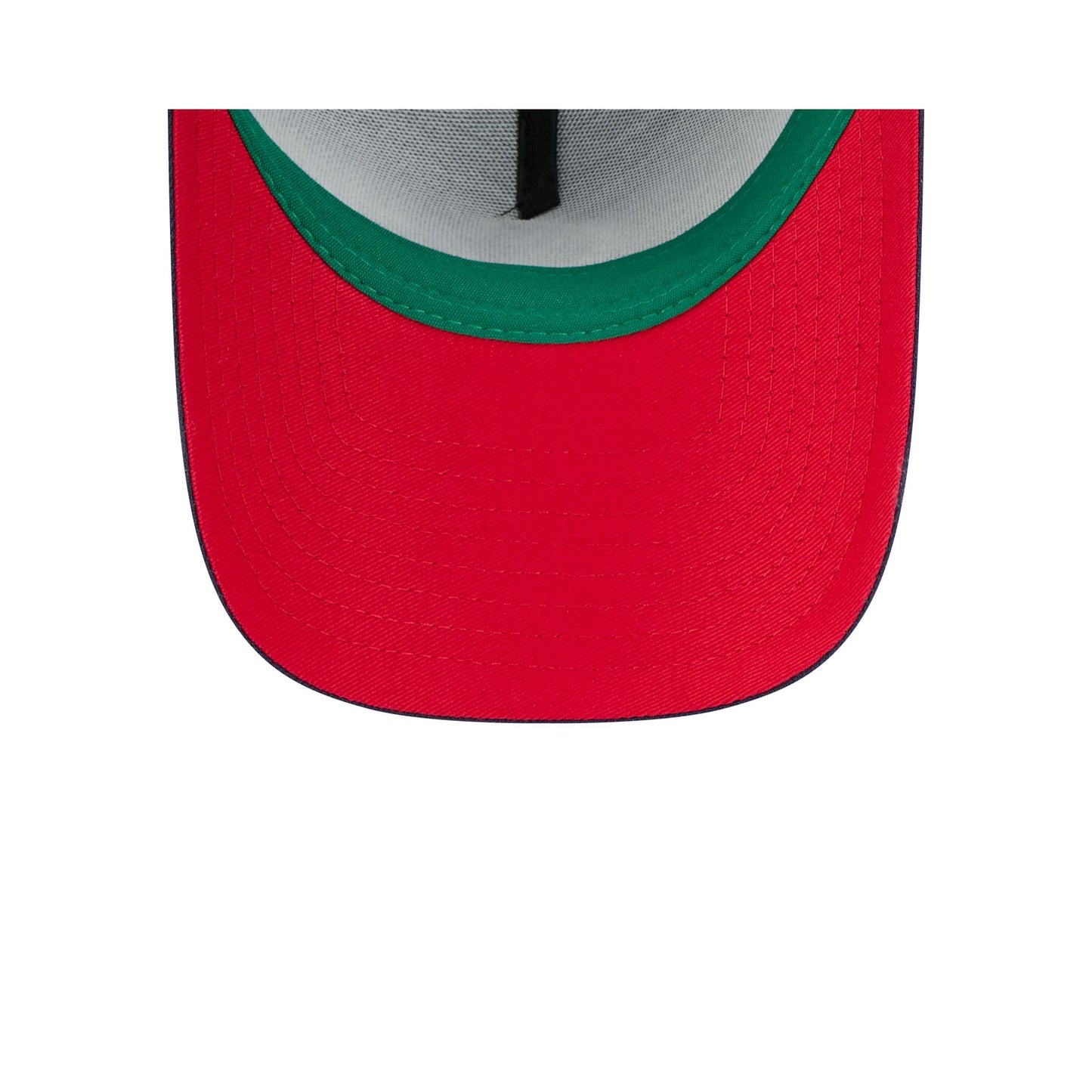 The Big League Chew x Milwaukee Brewers 9FORTY A-Frame Trucker features an embroidered Brewers mascot and a Big League Chew pin at the front panel with an adjustable snapback closure at the rear and red undervisor.