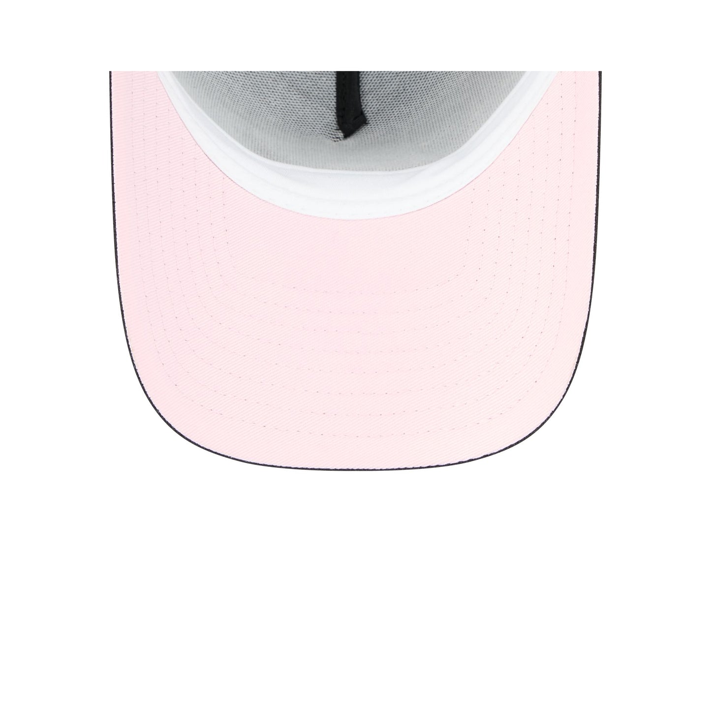 The Big League Chew x Pittsburgh Pirates 9FORTY A-Frame Trucker features an embroidered Pirates mascot and a Big League Chew pin at the front panel with an adjustable snapback closure at the rear and pink undervisor.