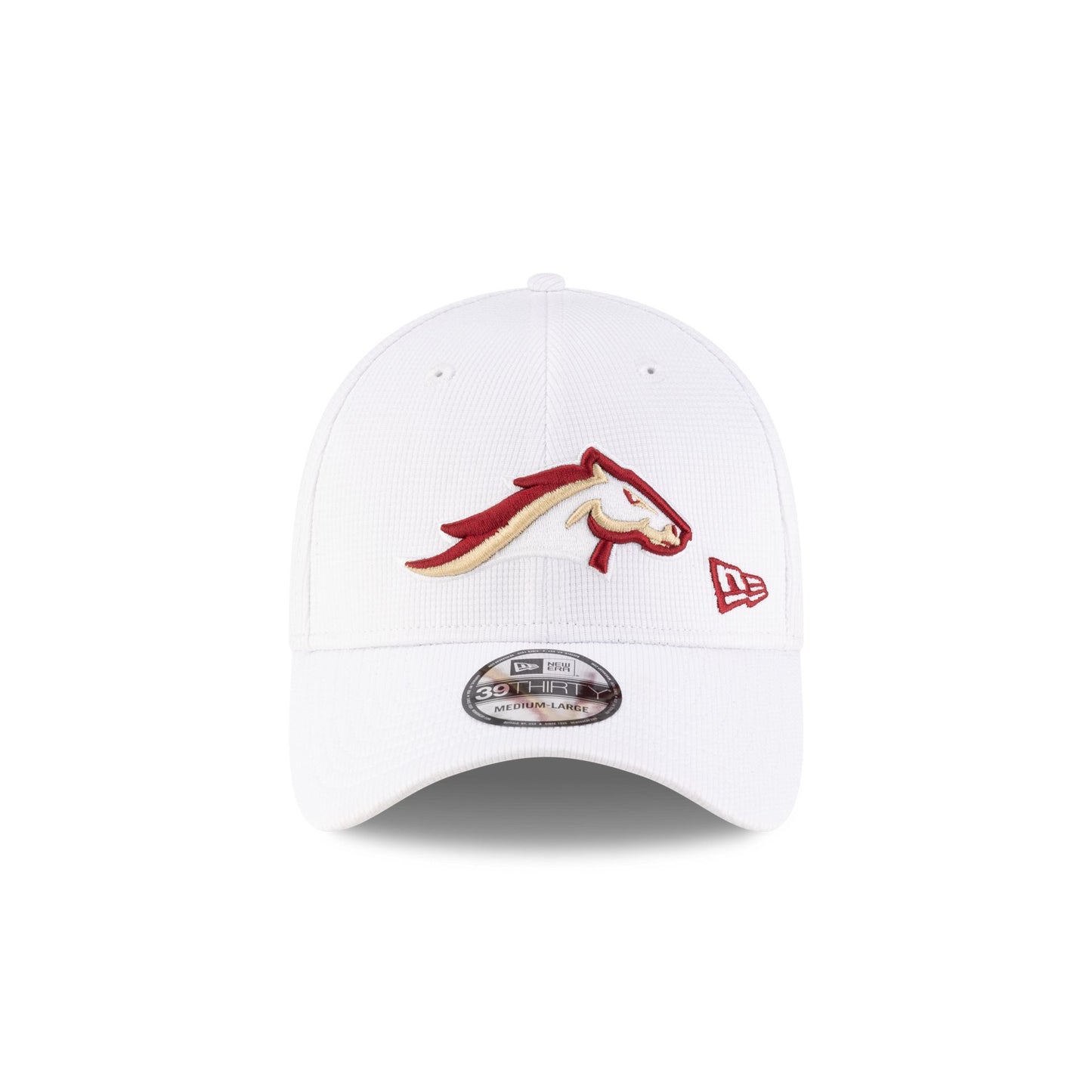 The Birmingham Stallions White 39THIRTY Stretch Fit Cap features an embroidered Stallions logo at the front panels with the New Era Flag at the left. Additional details include a UFL logo at the rear and a gray undervisor.