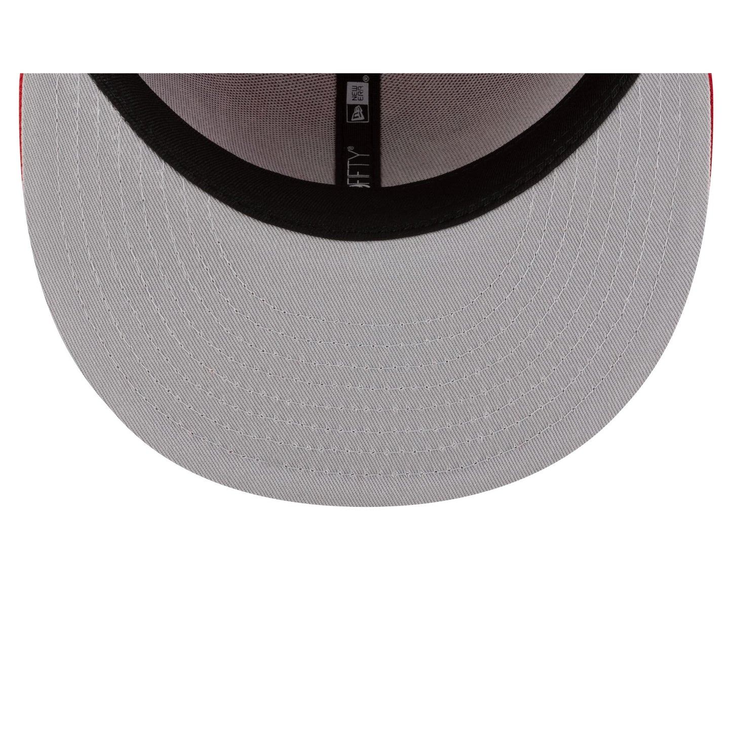 The Born x Raised x Diablos Rojos del México Scarlet 59FIFTY Fitted Cap features an embroidered Diablos Rojos Born x Raised logo at the front panels with a LMB 100th Anniversary logo at the rear and a gray undervisor.