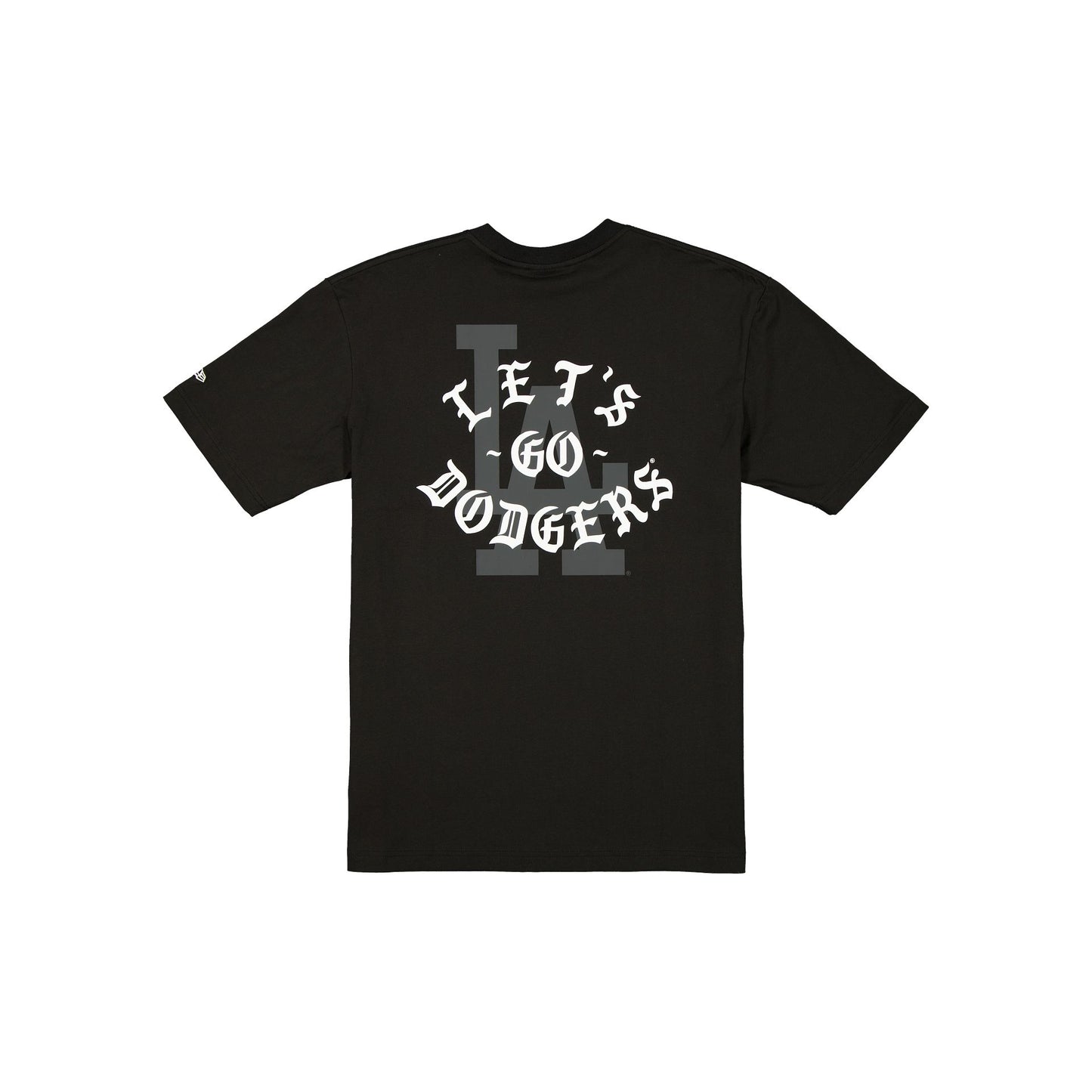 The Born x Raised x Los Angeles Dodgers Black T-Shirt features a screen-printed Dodgers and Born x Raised logos at the front and a "Let's Go Dodgers" graphic at the rear.