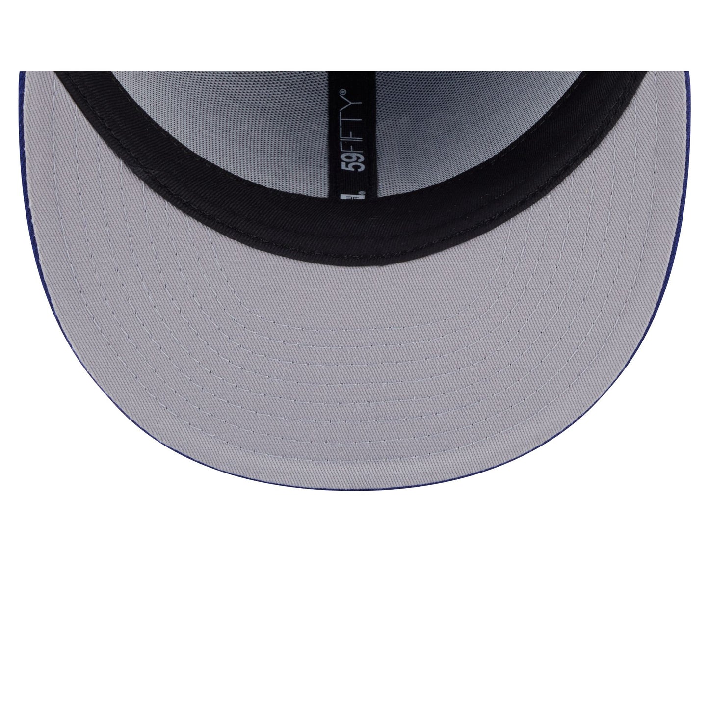 The Born x Raised x Los Angeles Dodgers World Series Champions 59FIFTY Fitted Cap features an embroidered Dodgers Born x Raised logo at the front panels with 2024 World Series Champions patch at the right-wear side. Additional details include an MLB Batterman logo at the rear and a gray undervisor.