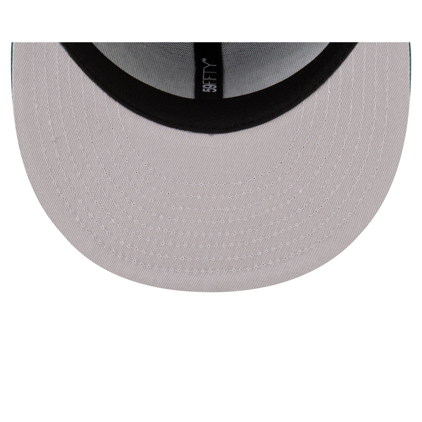 The Born x Raised x Philadelphia Eagles Script 59FIFTY Fitted Cap features an embroidered Eagles script wordmark with logo at the front panels and a Born x Raised logo at the right-wear side. Additional details include the NFL Shield logo at the rear and a gray undervisor.