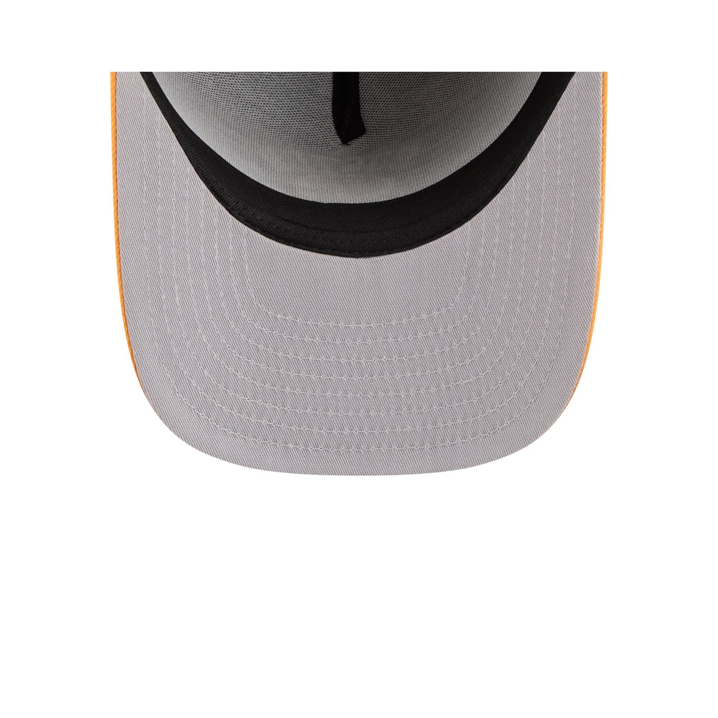 The Boston Bruins Arched 9FIFTY A-Frame Snapback features an embroidered Bruins arched graphic at the front panels with a team graphic at the right-wear side. Additional details include the establishment year above an adjustable snapback closure at the rear and a gray undervisor.
